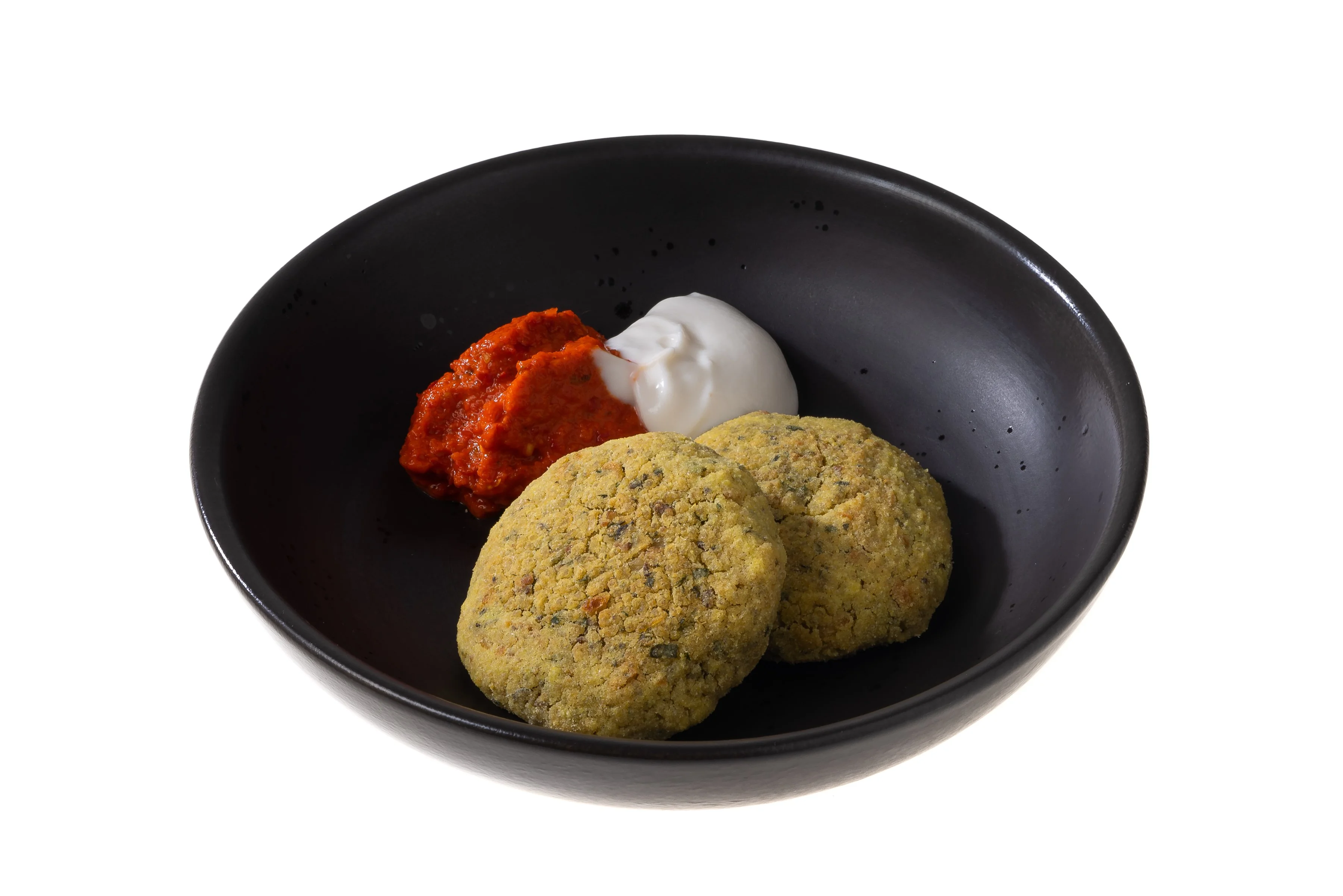 ШАГ 10 Переложить котлеты на противень, покрытый пекарской бумагой, смазать их растительным маслом и отправить в духовку, разогретую до 240 градусов, на 7–10 минут. Или обжарить на сковороде с растительным маслом до румяной корочки. Подавать с айваром и йогуртом.