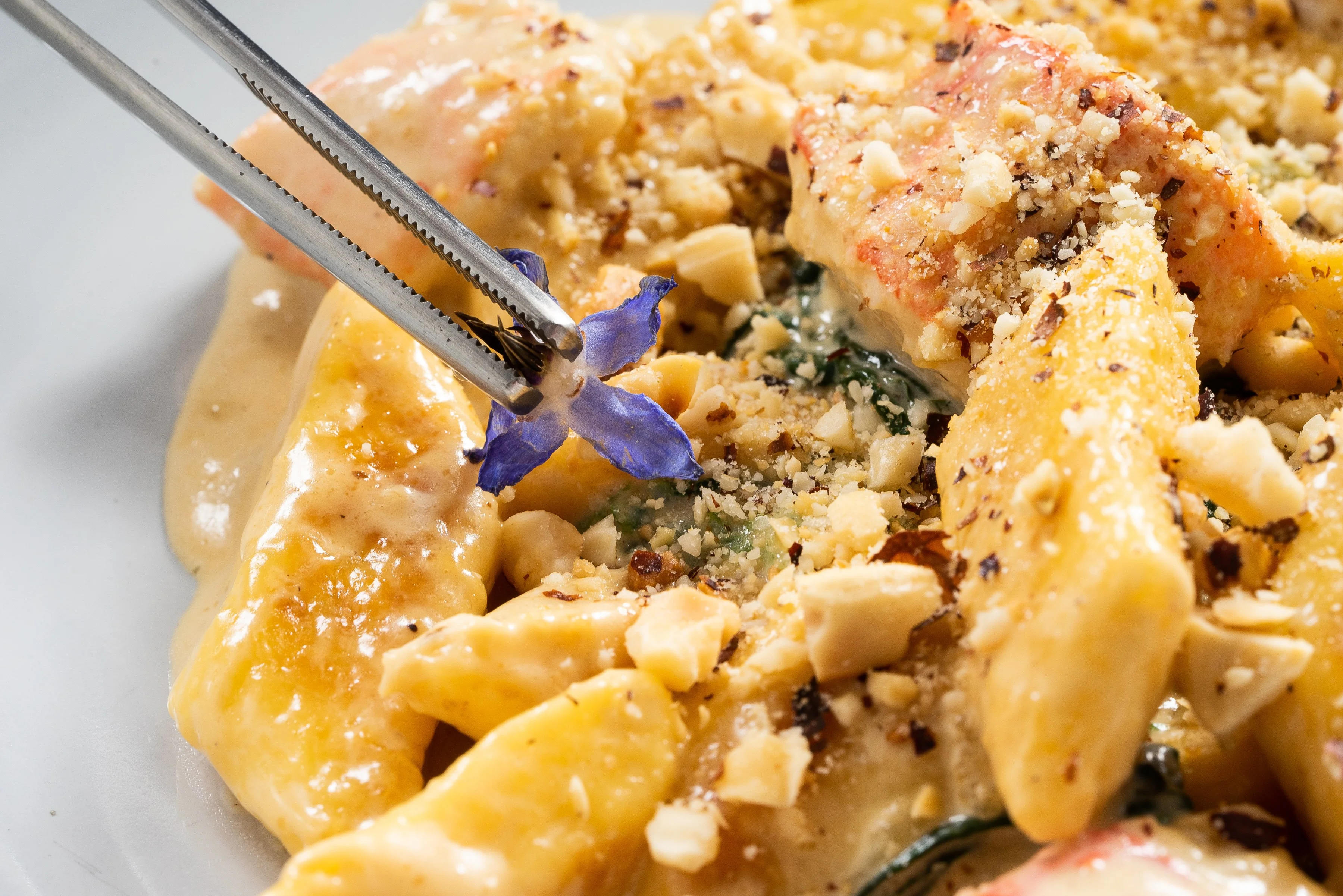 Ленивые вареники с картошкой и сливочным соусом с крабом