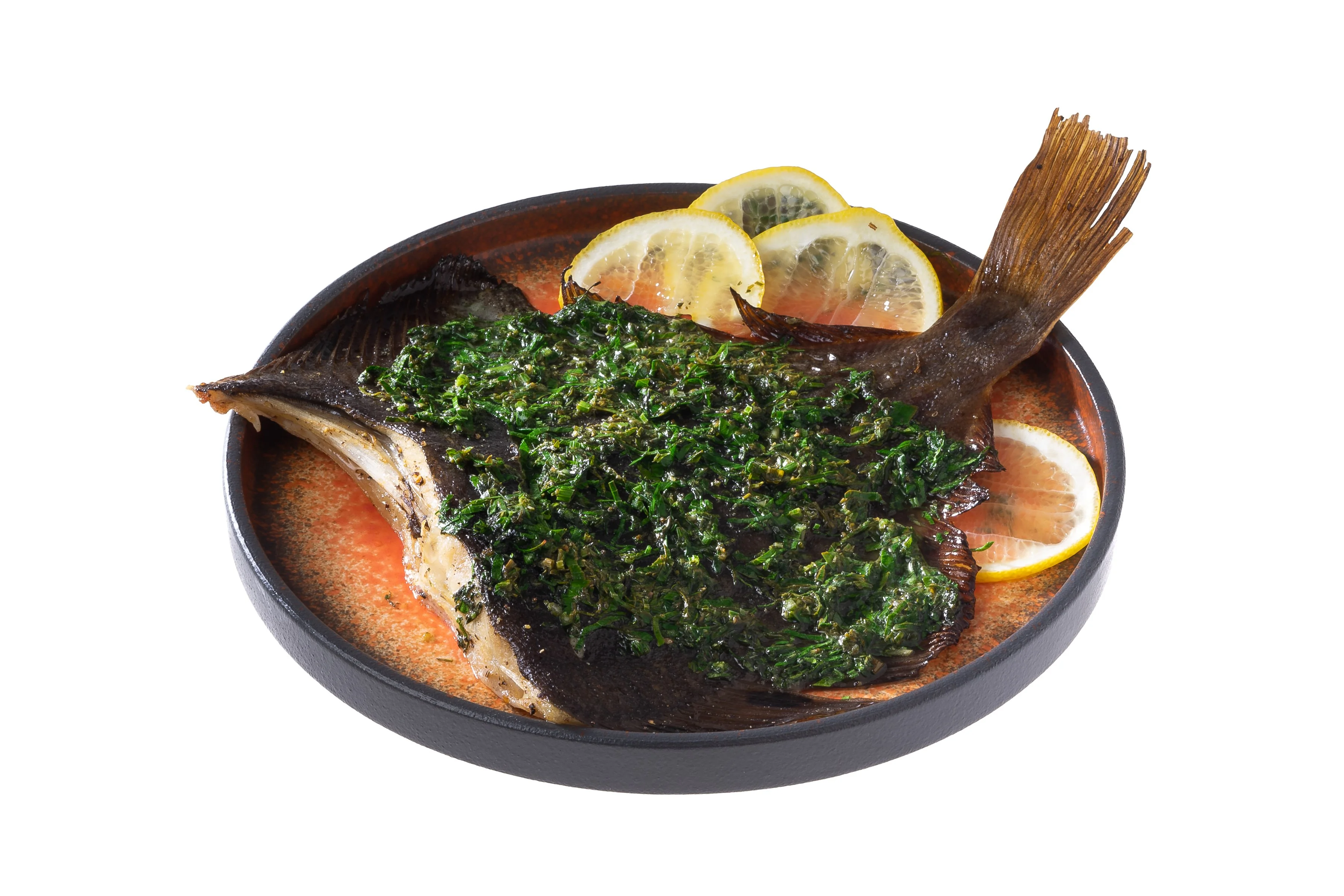 ШАГ 1 Потрошеную и промытую камбалу обсушить бумажным полотенцем и сделать на коже несколько неглубоких надрезов поперек туши на темной стороне.