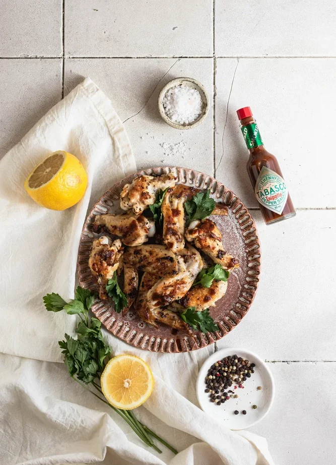 ШАГ 1 Смешать маринад из сока лимона, масла, перца, соли и соуса TABASCO® Чипотле.
