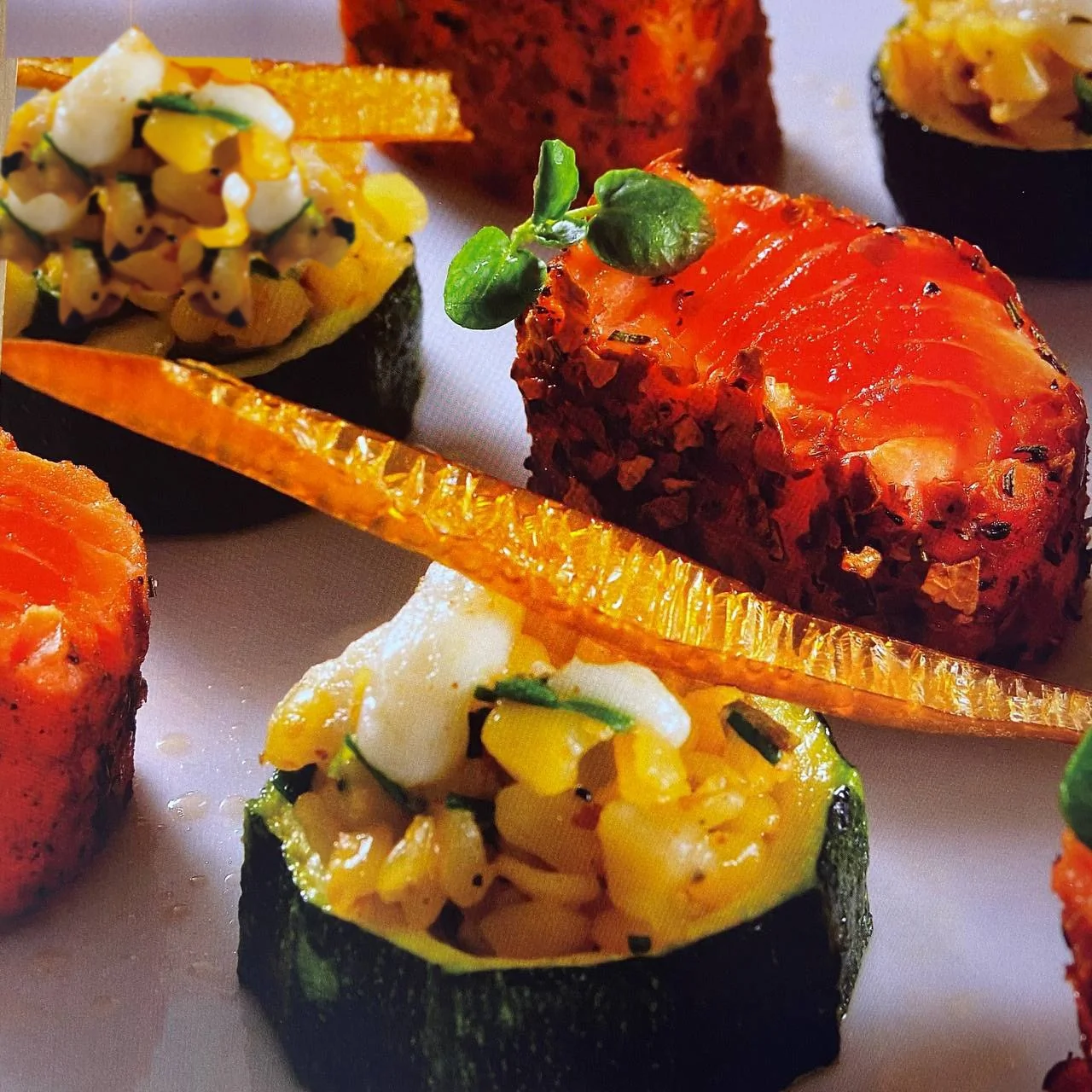 Лосось, зажаренный с морскими водорослями, цукини и пшеничными зернами
