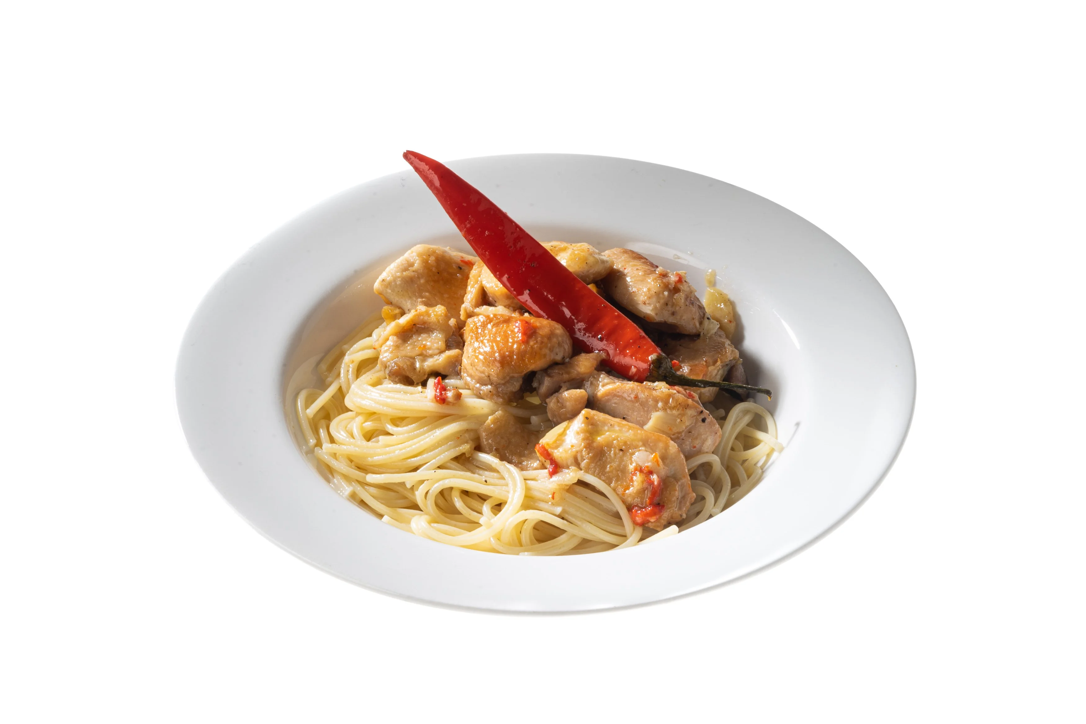 ШАГ 7 Запеченный чеснок выдавить из шелухи и добавить к курице. Также поступить с 2 перцами чили — очистить и добавить к курице. Подавать с хлебом или пастой.