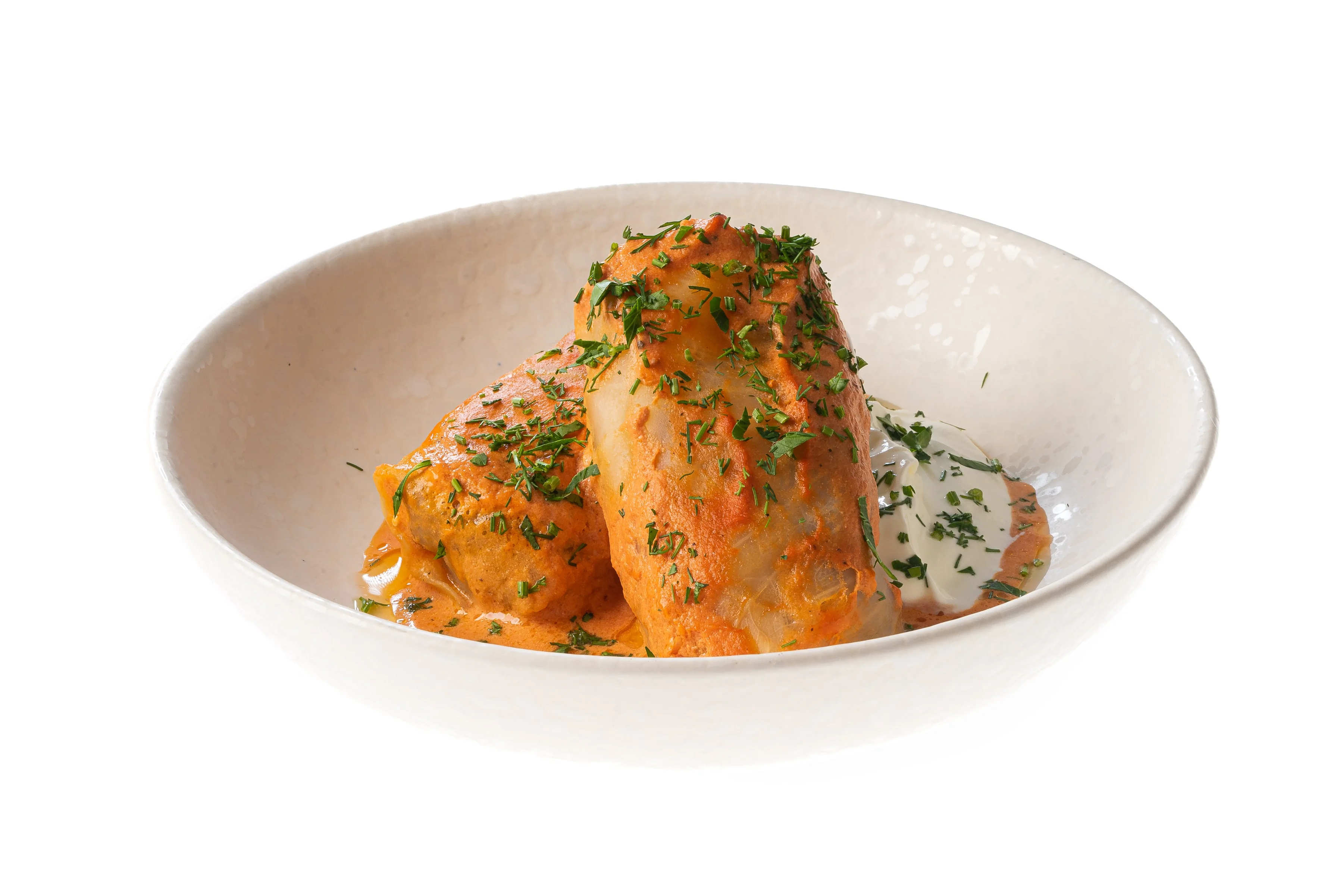 ШАГ 13 Готовые голубцы посыпать зеленью и подавать со сметаной.