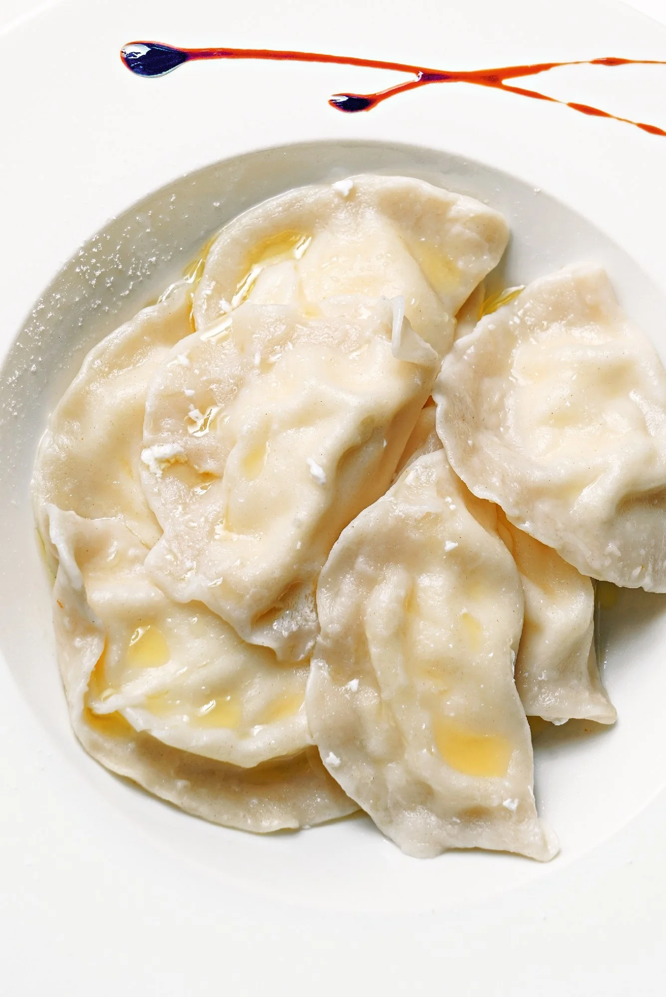 ШАГ 4 Готовые вареники шумовкой выложить на тарелку, полить растопленным сливочным маслом, приправить сметаной.