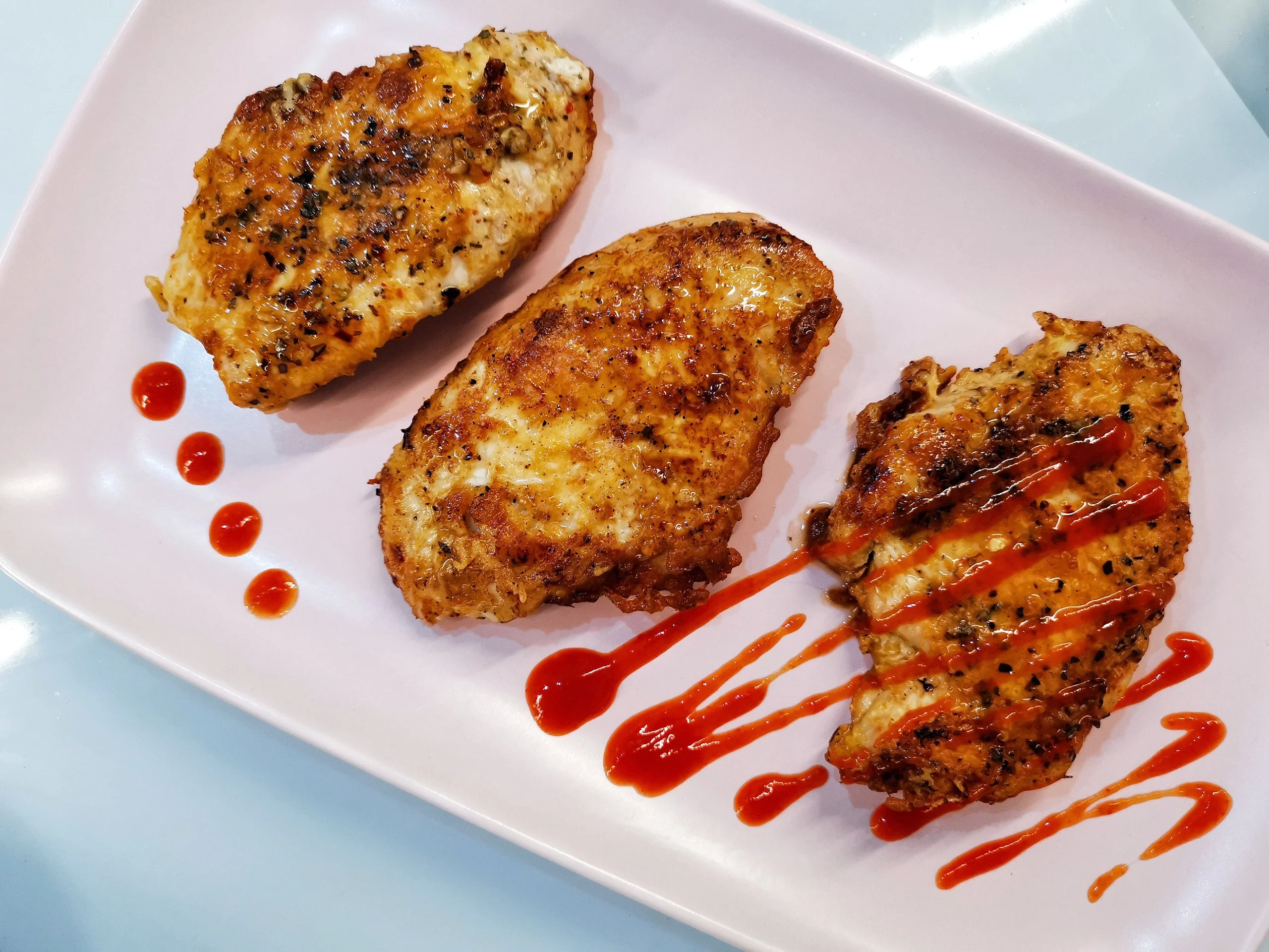 ШАГ 4 Обмакнуть мясо в соус с обеих сторон и выложить на разогретую сковороду с маслом.