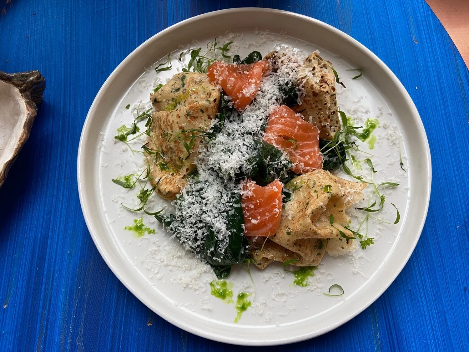 Блины со шпинатом и гравлаксом