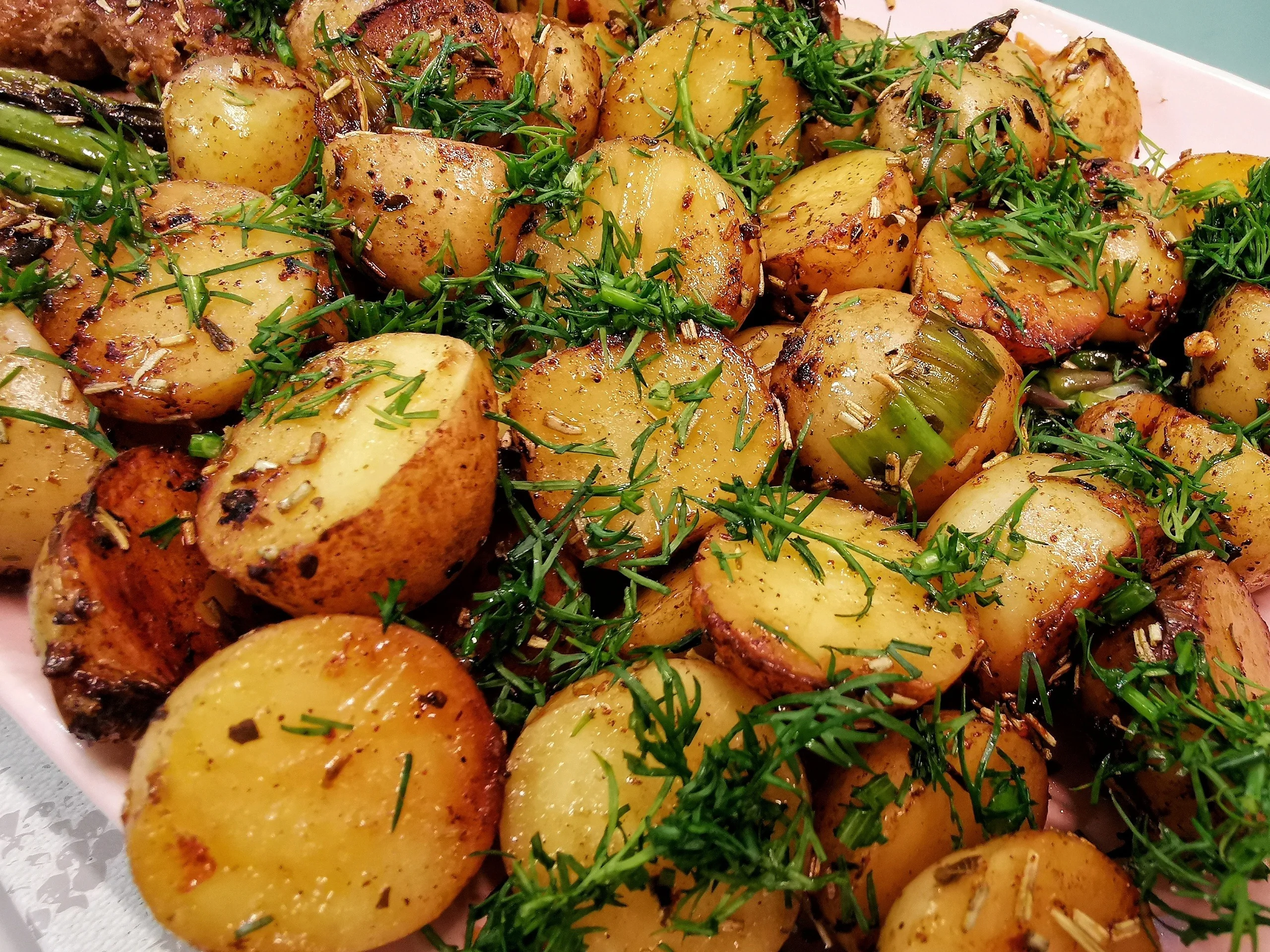 Жареный молодой картофель со спаржей