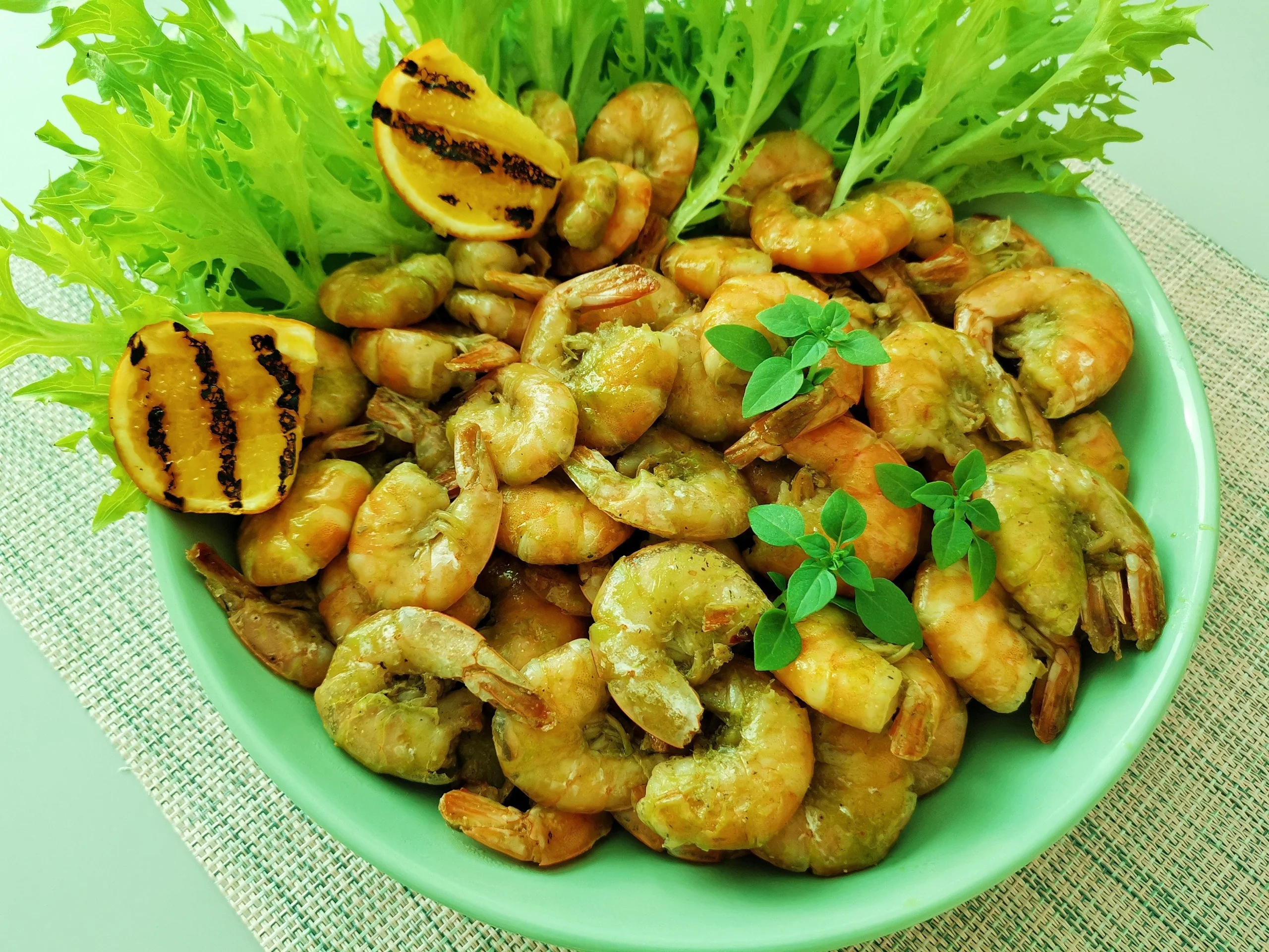 Жареные креветки в базиликовом соусе