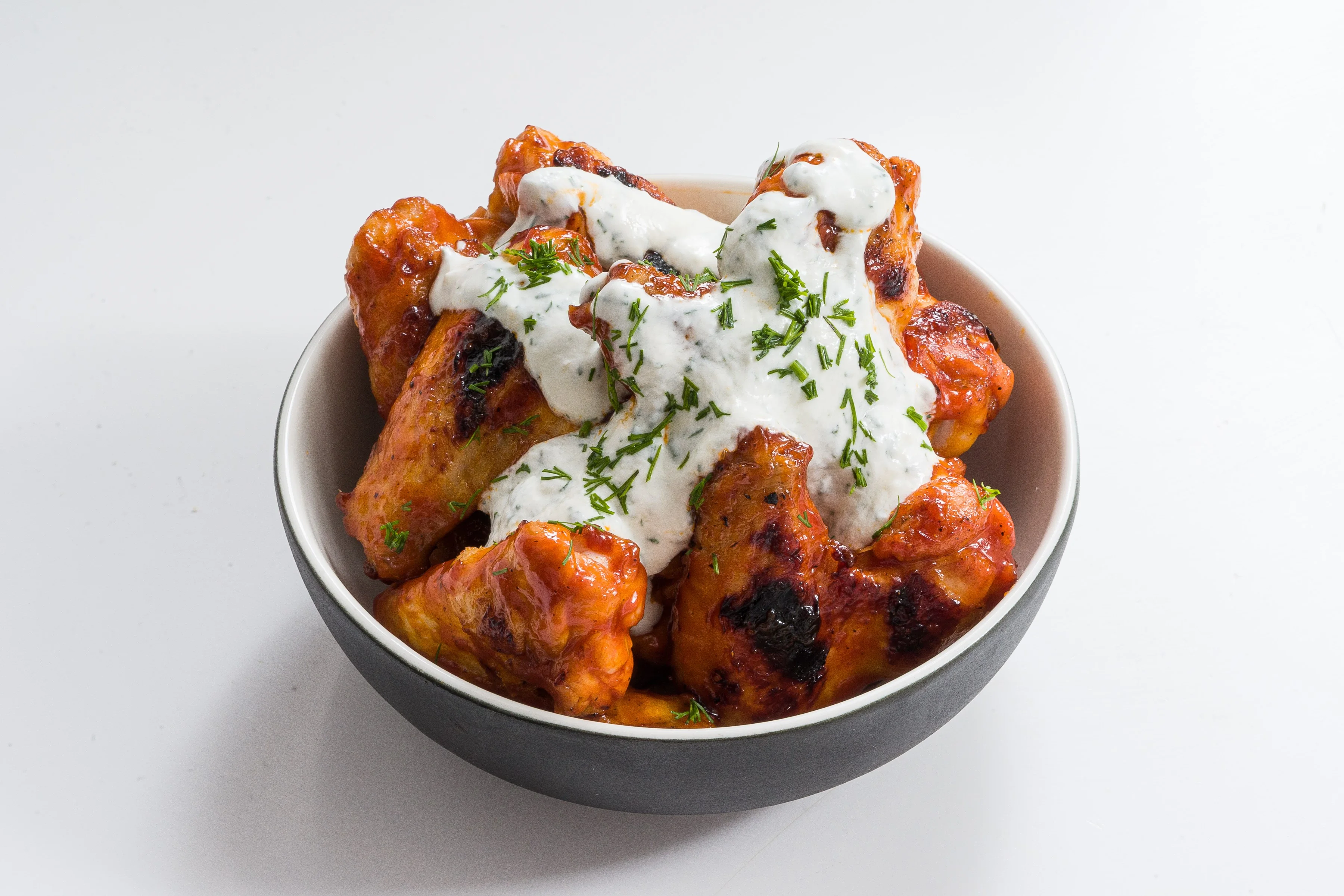 ШАГ 8 Достать крылья из миски щипцами и положить их на решетку мангала. Запекать до золотистого цвета и хрустящей корочки.