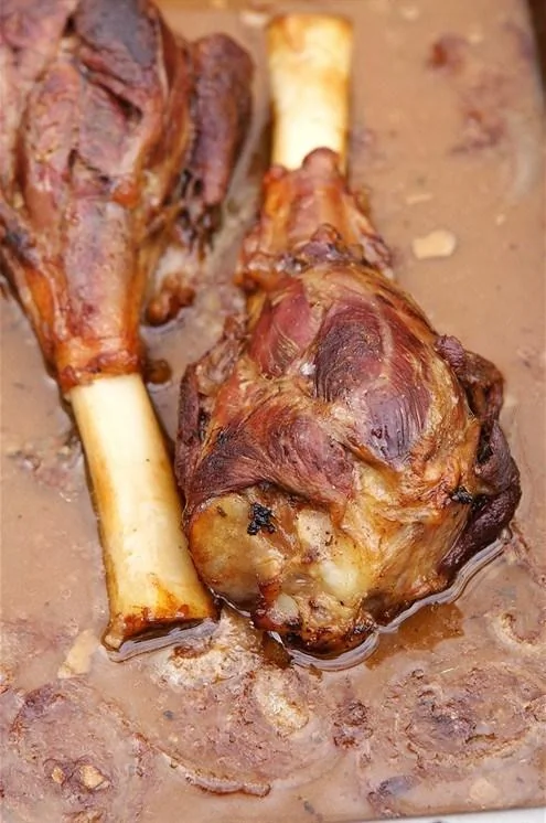ШАГ 5 Выньте мясо из духовки, накройте фольгой и оставьте на 15 минут. Порежьте на куски и полейте соками из под мяса. Подавайте с картофельным пюре.