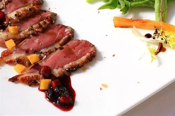 Жареная утка с соусом из красной смородины