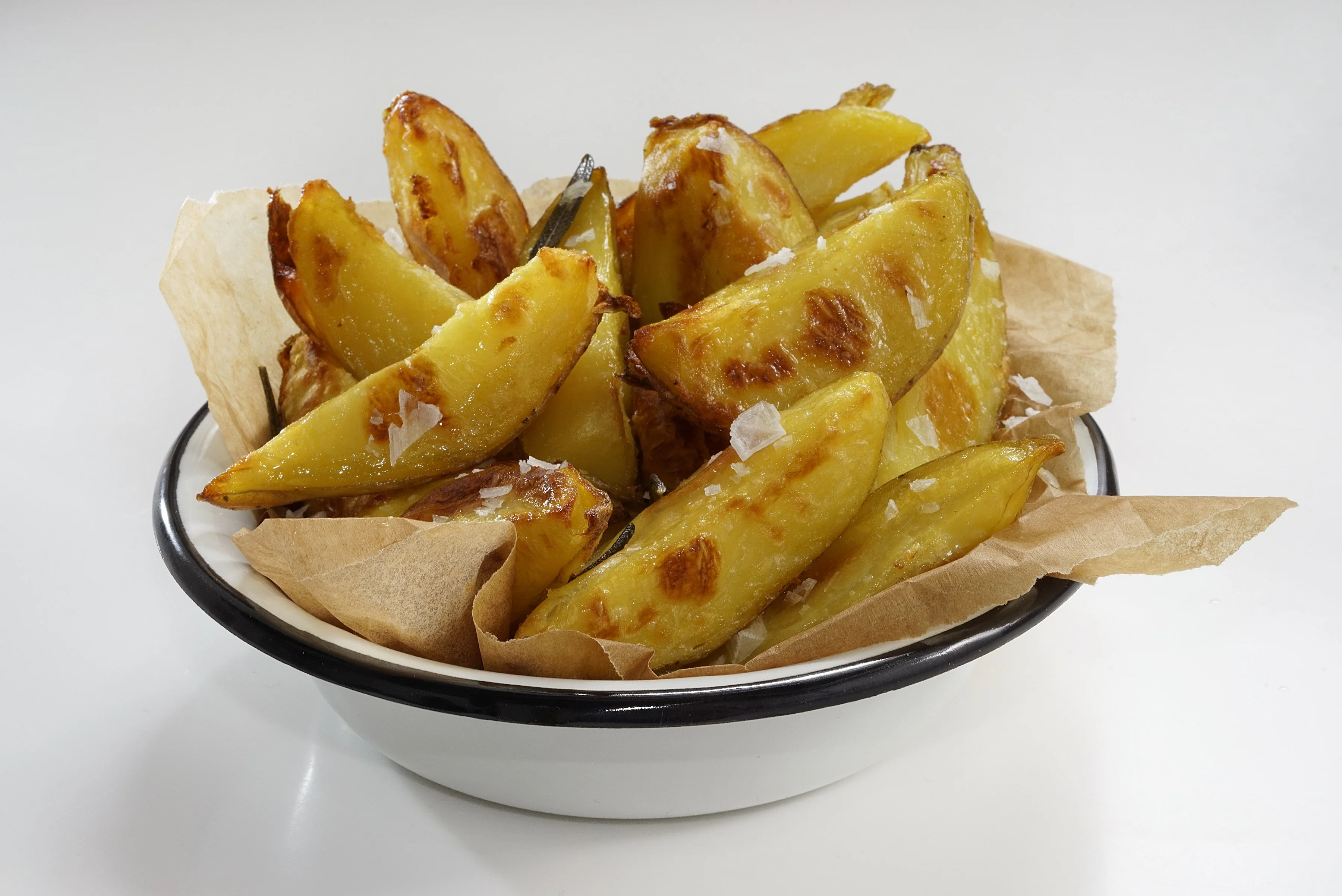ШАГ 10 Перед подачей достать и выбросить чеснок и розмарин, картофель присыпать крупной солью и сразу подавать.