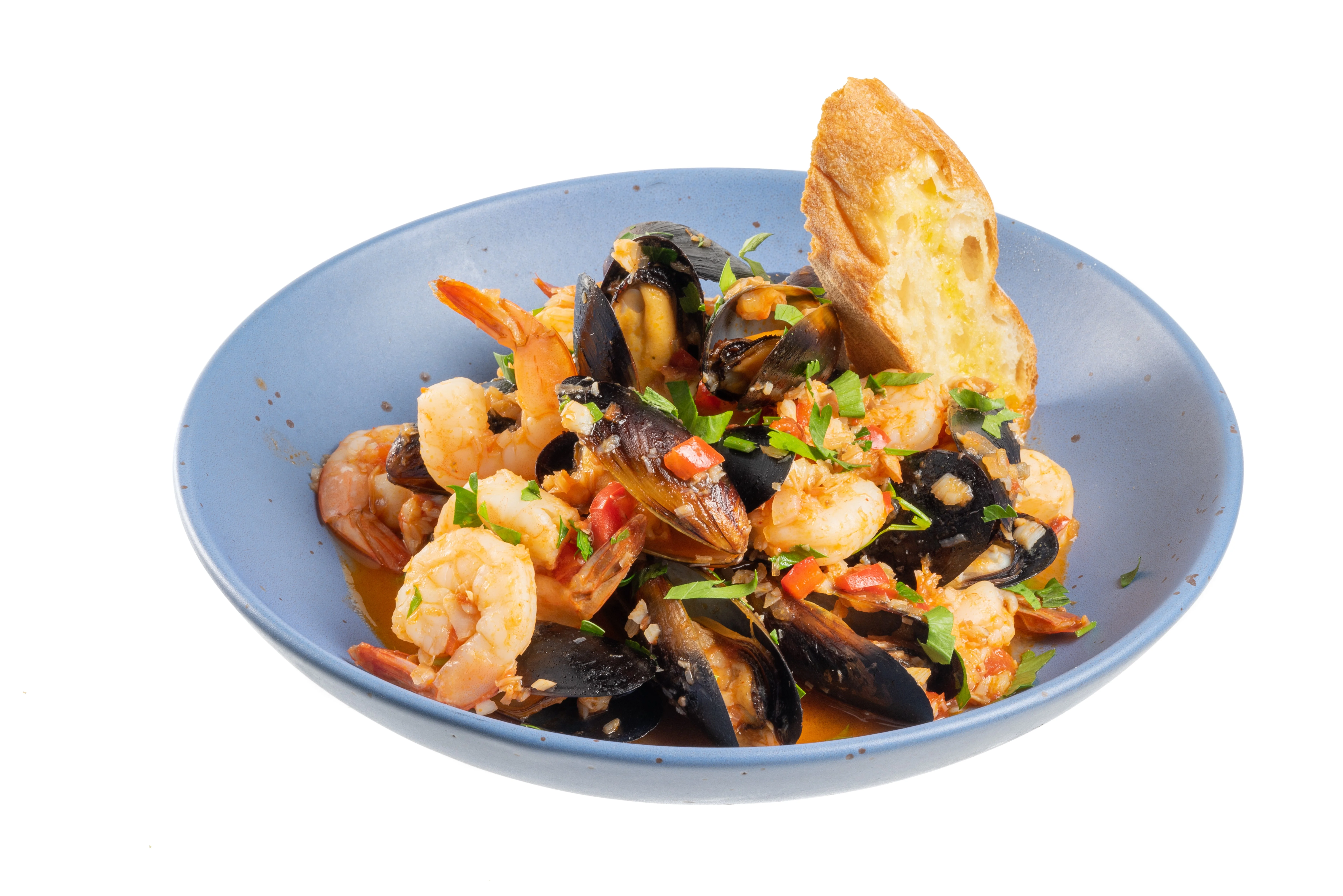 ШАГ 4 Рагу приправить рубленой петрушкой, снять с огня, разлить по тарелкам и в каждую тарелку наломать хлеба с чесноком.