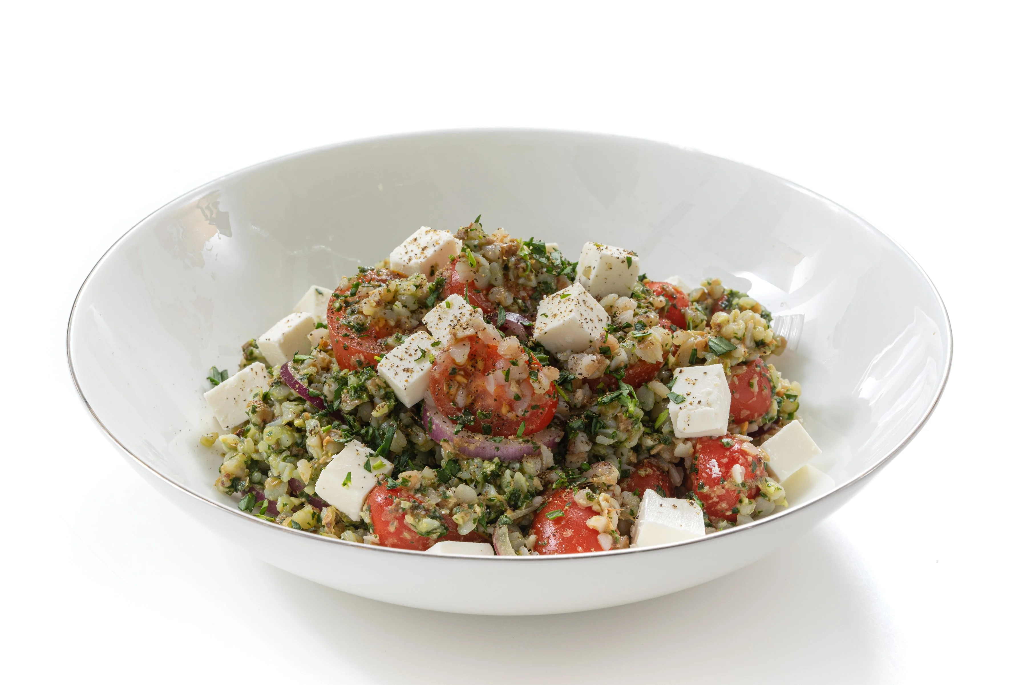 Ингредиенты для приготовления Гречка с помидорами, песто и фетой: