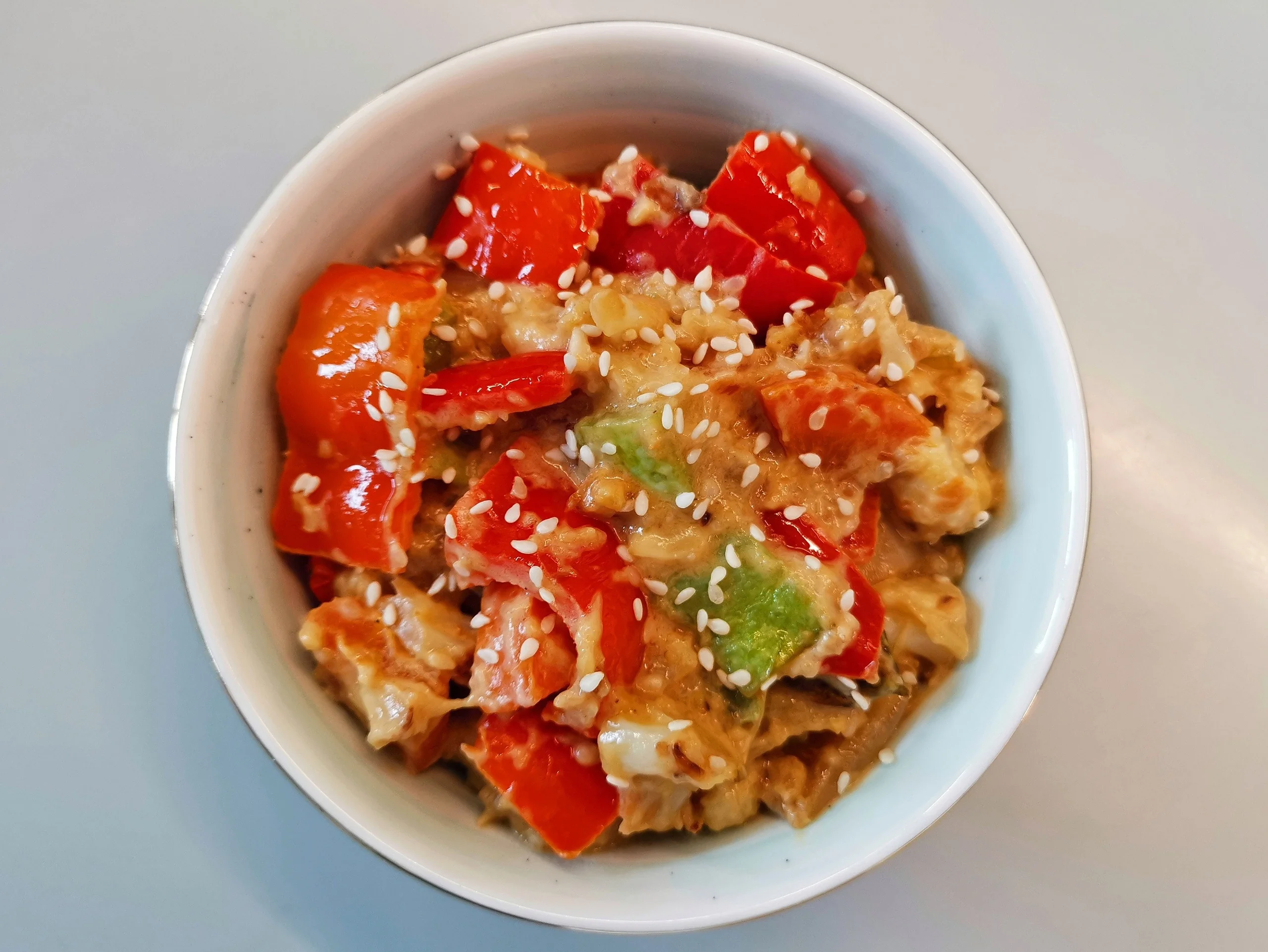 ШАГ 11 Через 3–4 минуты снять с огня, переложить в глубокое блюдо. По желанию можно украсить щепоткой кунжута.