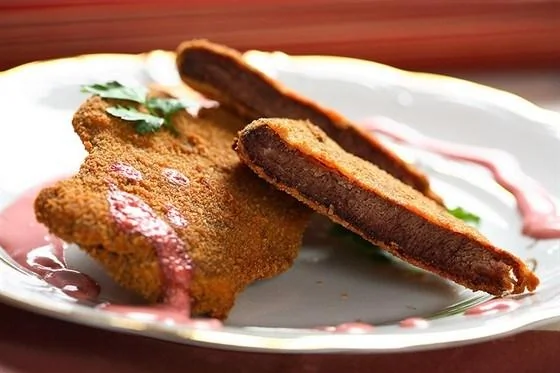 ШАГ 3 Окуните каждый кусок мяса в слегка взбитое яйцо, лишнее стряхните и обваляйте в сухарях.