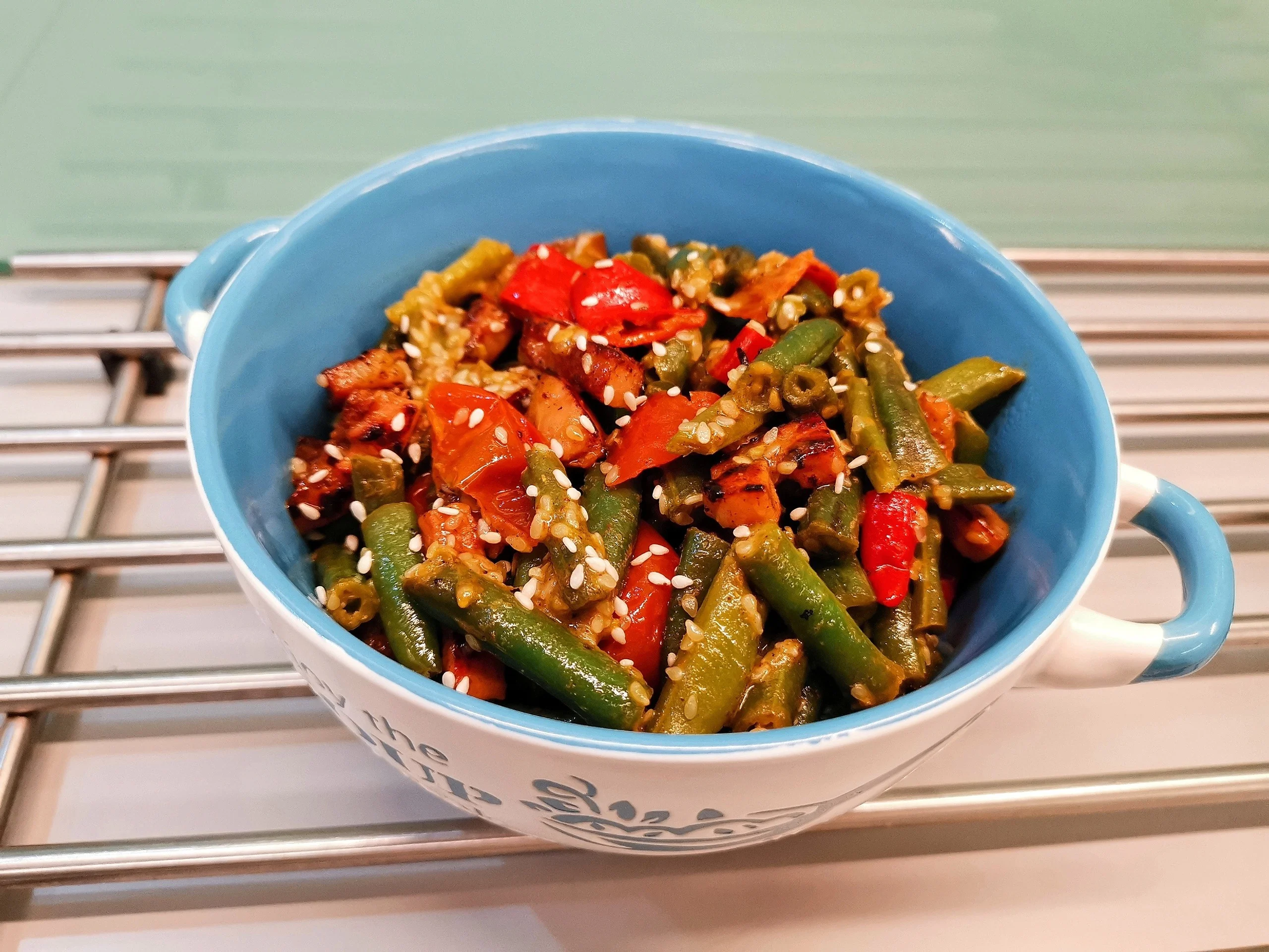 ШАГ 5 В разогретые на сковороде 3 чайные ложки масла выложить стручковую фасоль.