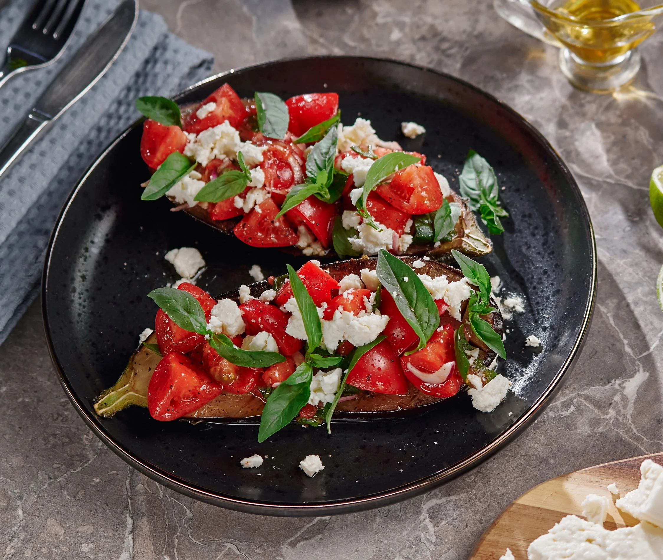 Ингредиенты для приготовления Баклажан вок с томатами и греческим сыром: