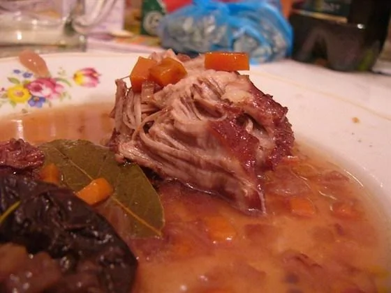 ШАГ 3 Попробовать соус, посолить, поперчить, тушить еще минут двадцать-тридцать. Снять с огня, достать кусок свинины, нарезать его кусками, разложить по тарелкам, залить соусом и подавать.