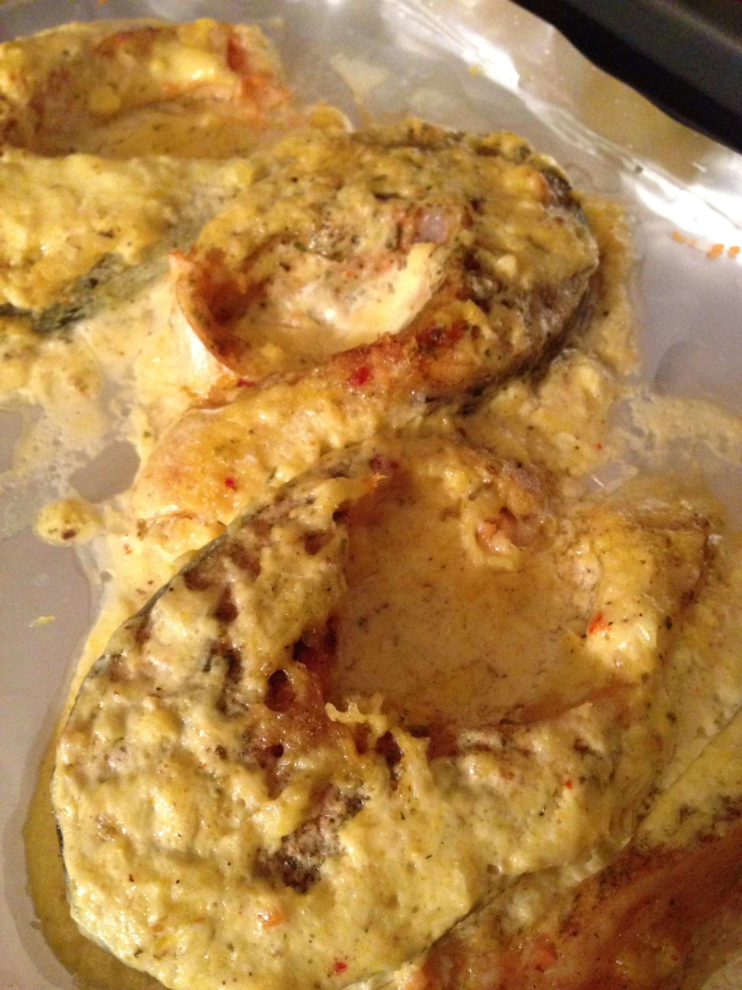 ШАГ 1 Рыбу порезать на порционные кусочки, посолить, поперчить, сложить в емкость.