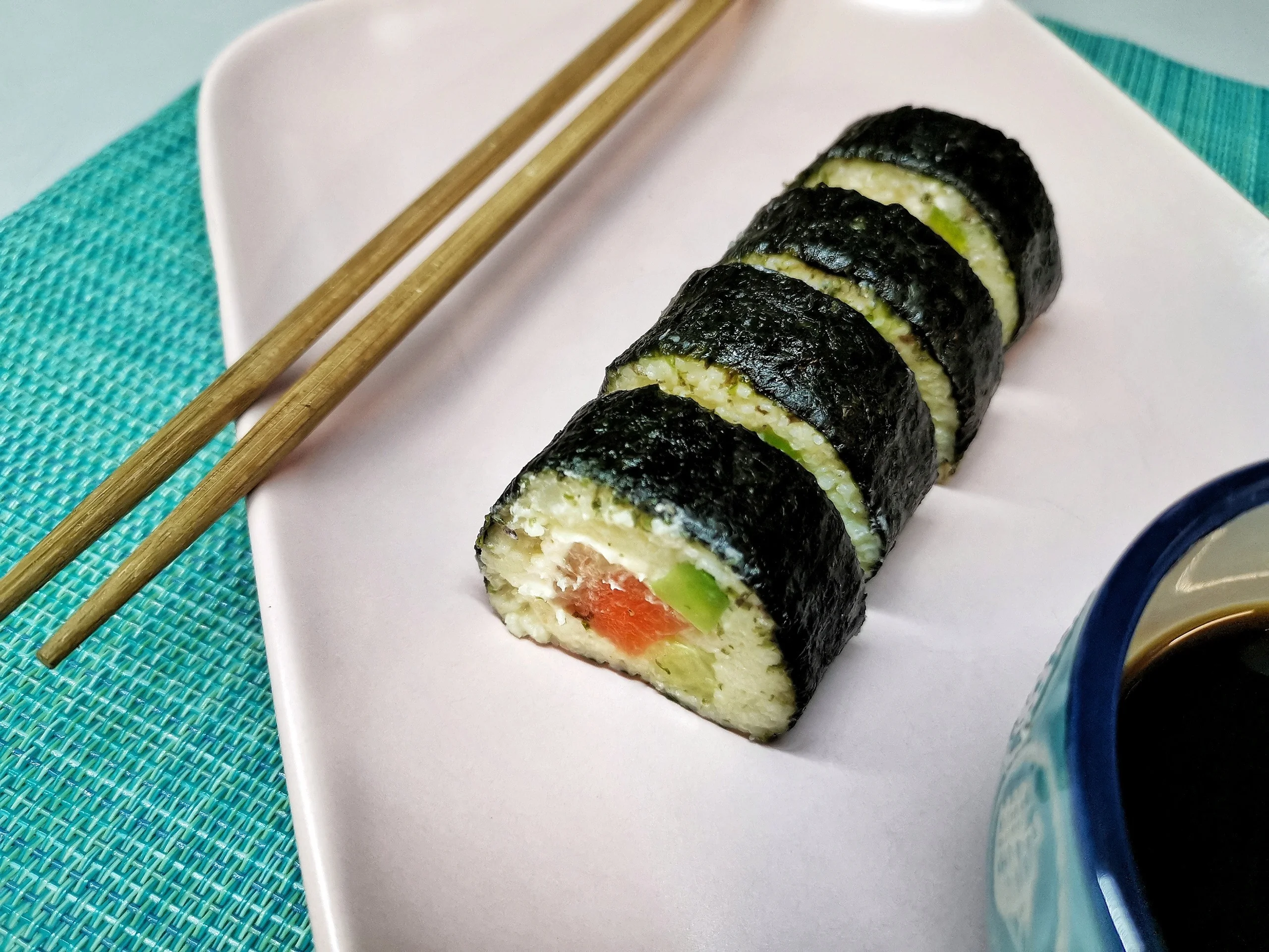 Кето-роллы из цветной капусты с лососем