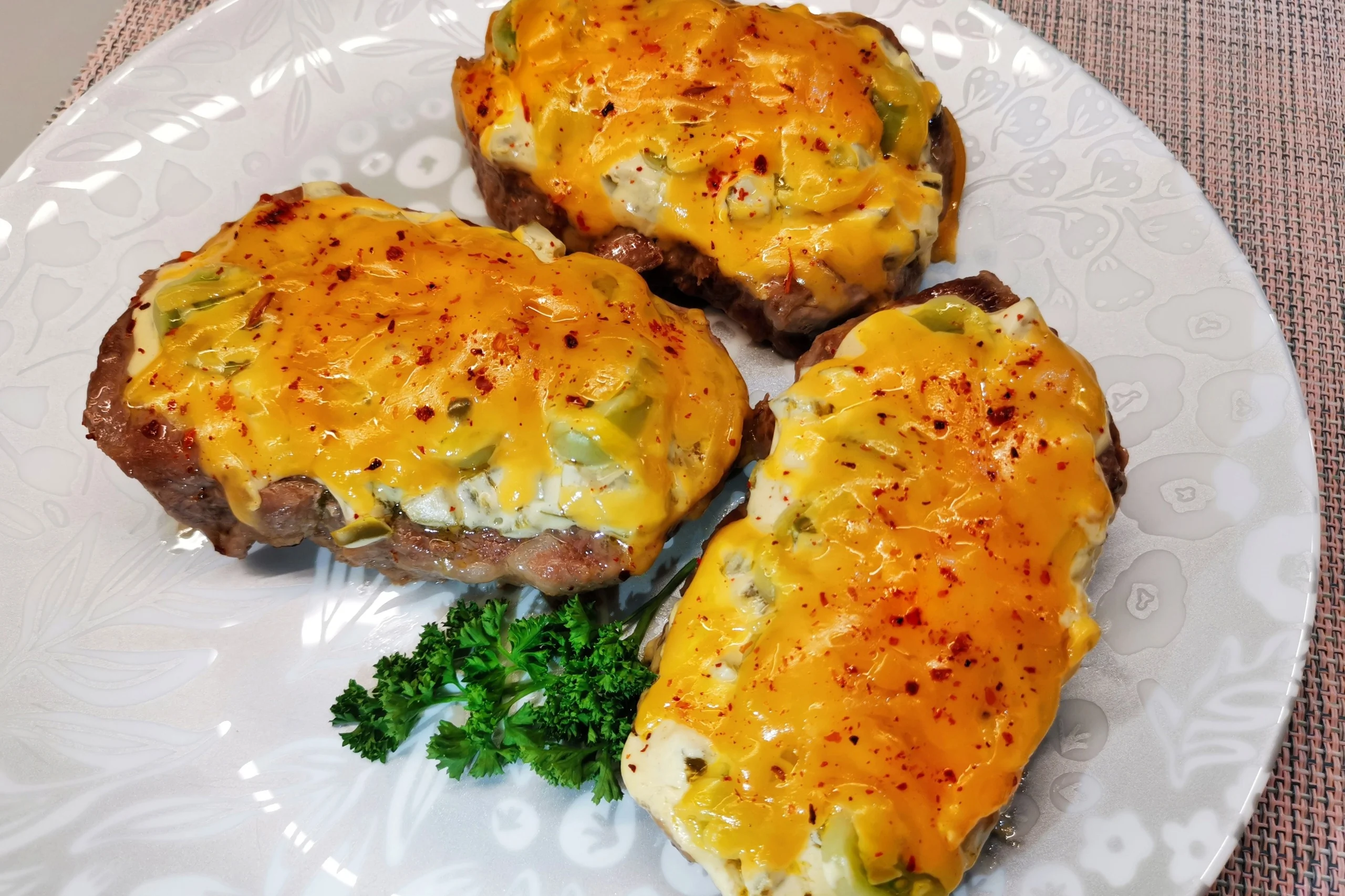 ШАГ 16 Дать сыру расплавиться под крышкой в течение нескольких минут на слабом огне. Переложить на блюдо и подавать. По желанию можно приправить хлопьями чили.