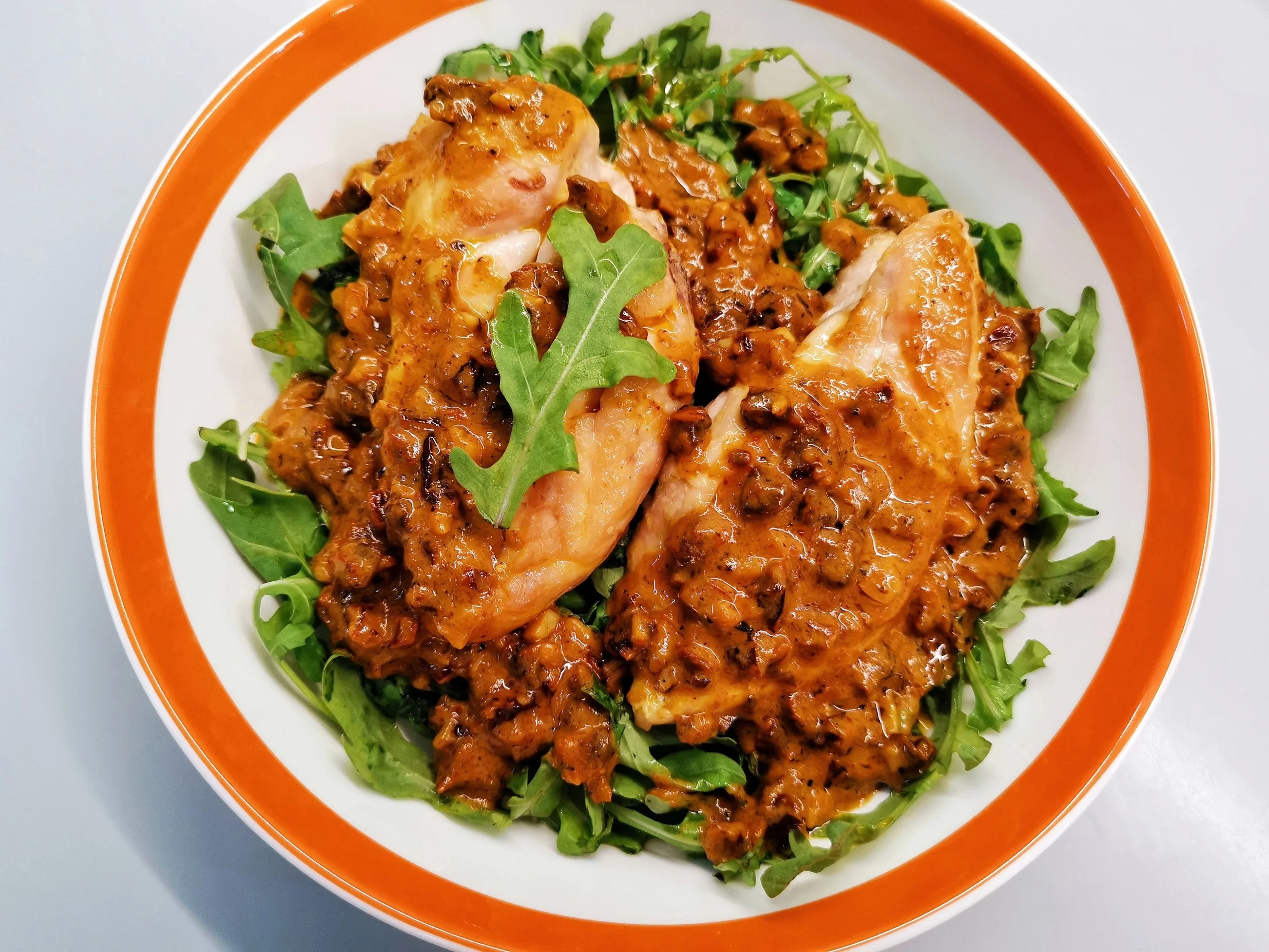 ШАГ 18 Готовую курицу выложить на руколу.