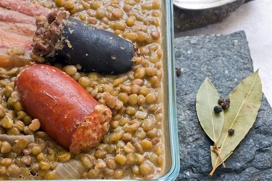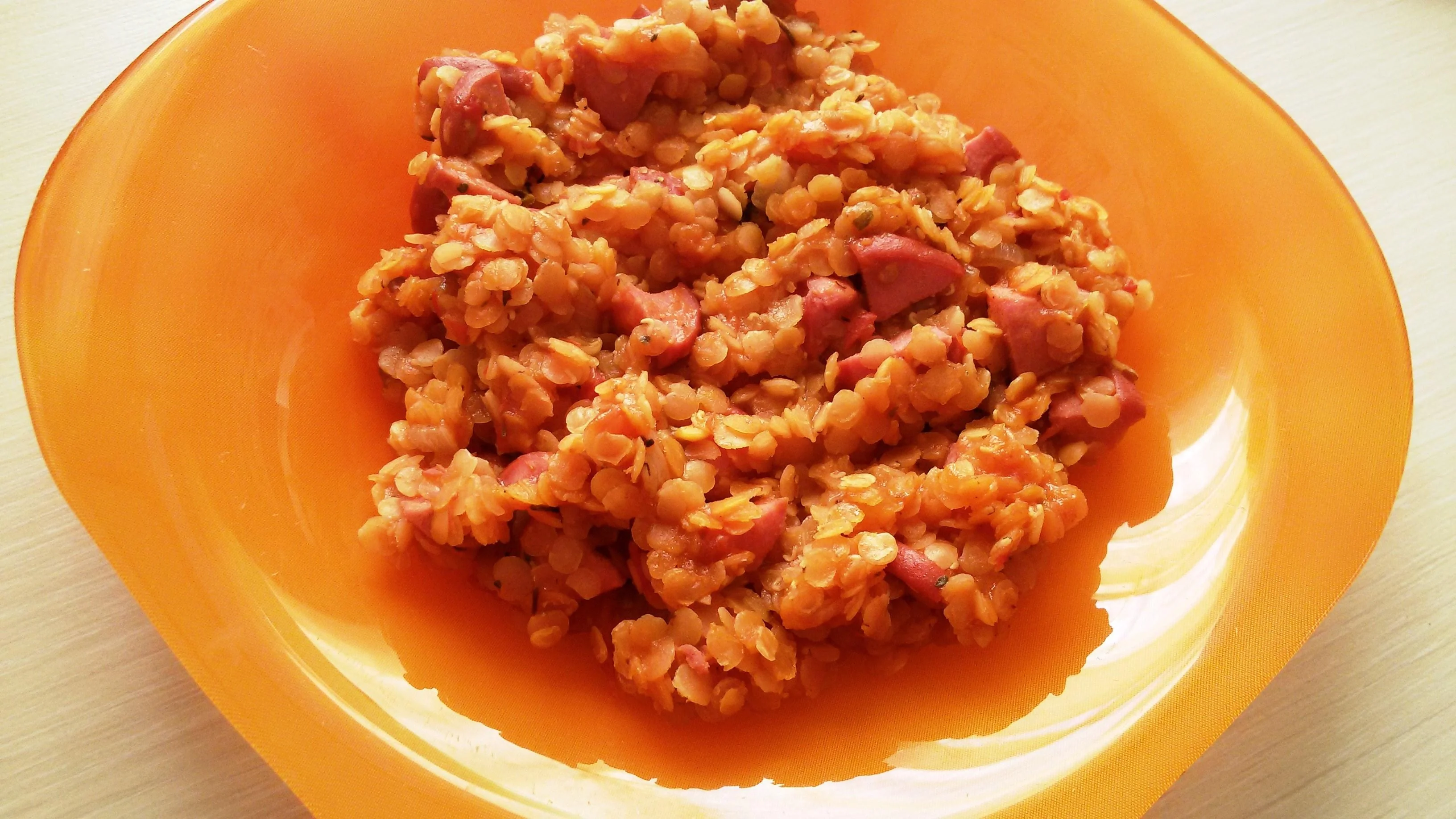 Сосиски с чечевицей