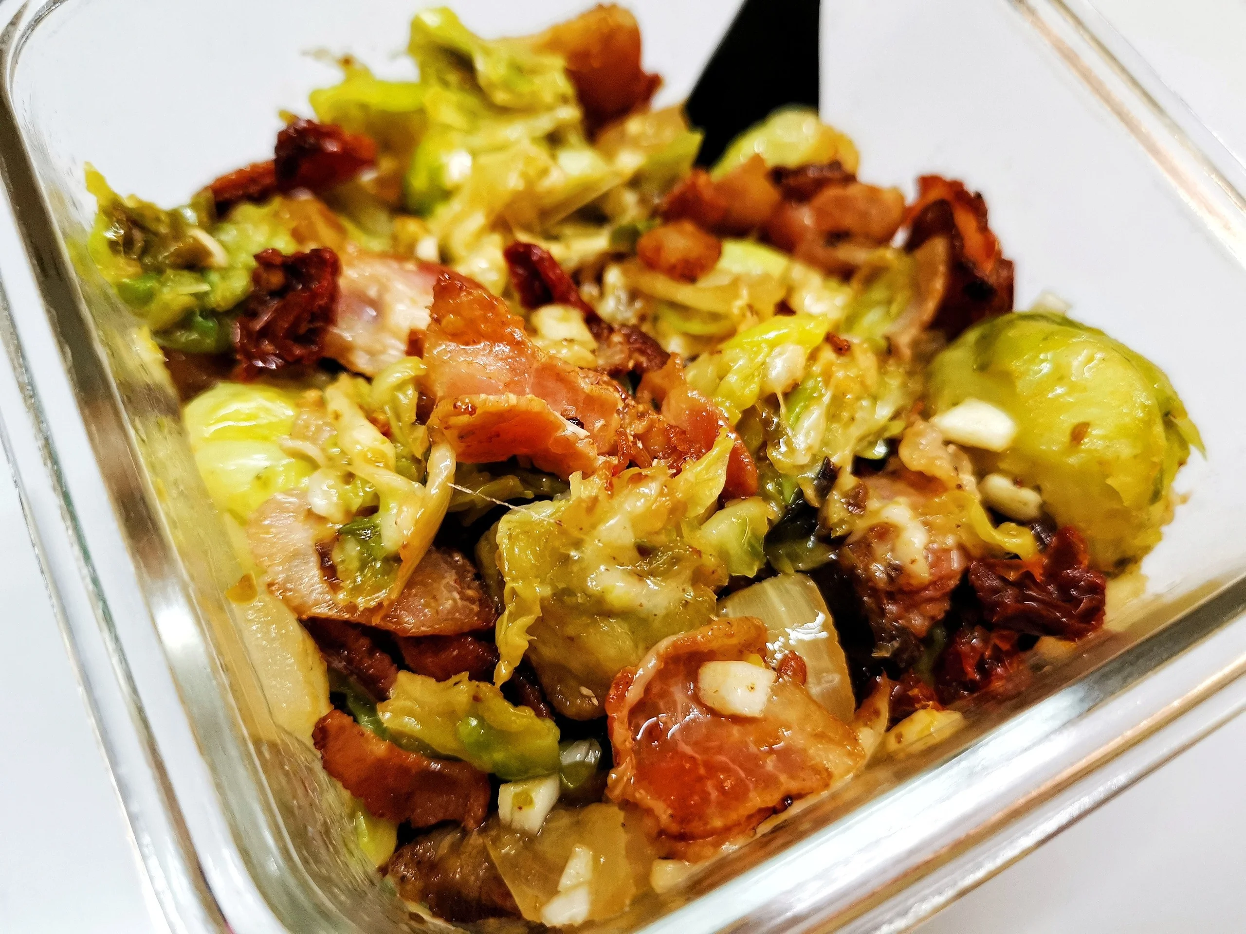 Брюссельская капуста, обжаренная с беконом и сыром