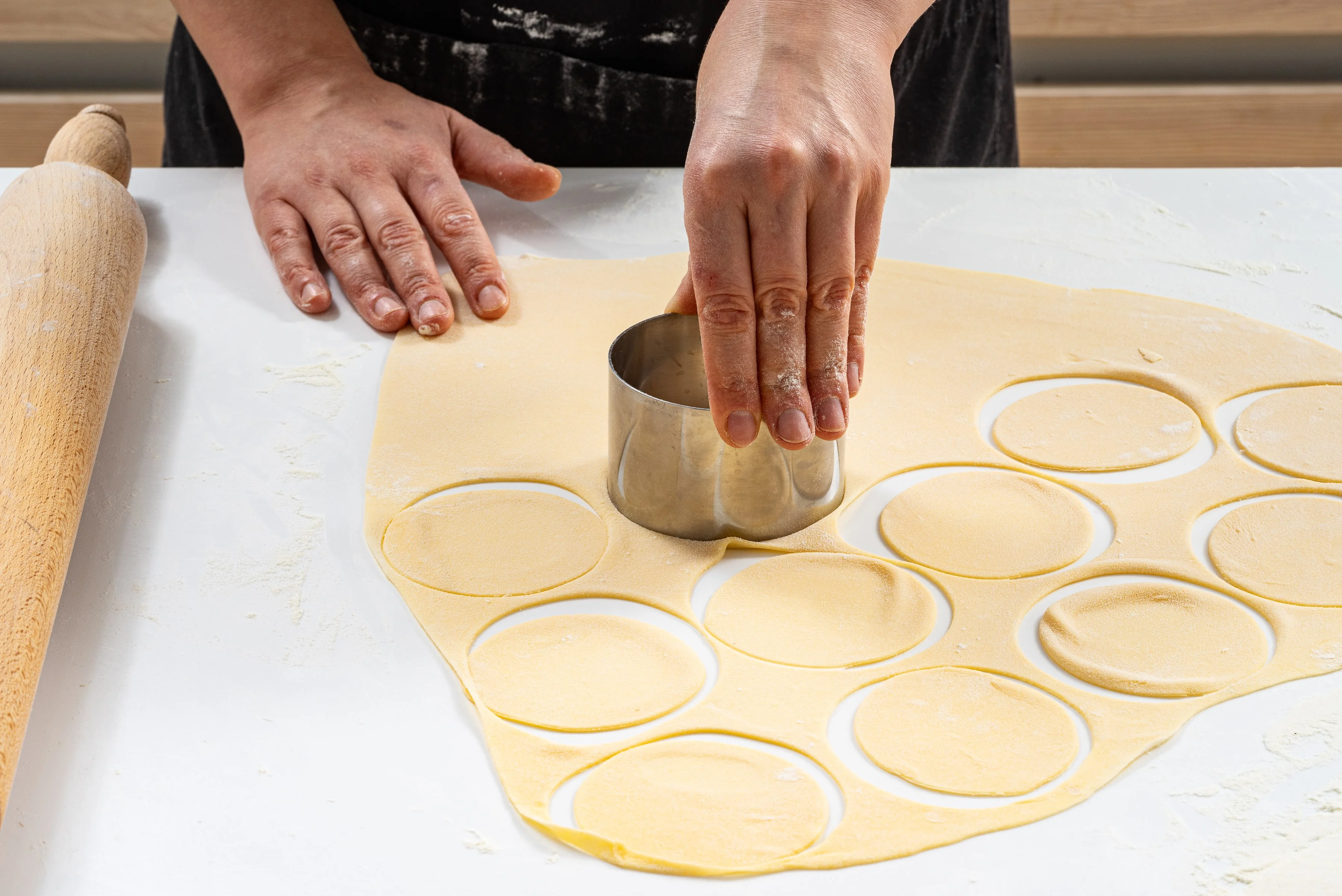 ШАГ 7 Такое тесто для пельменей можно приготовить заранее, оно хранится в холодильнике два дня. Когда подойдет время, просто раскатать тесто, нарезать кружочками и слепить из него пельмени с любимой начинкой.