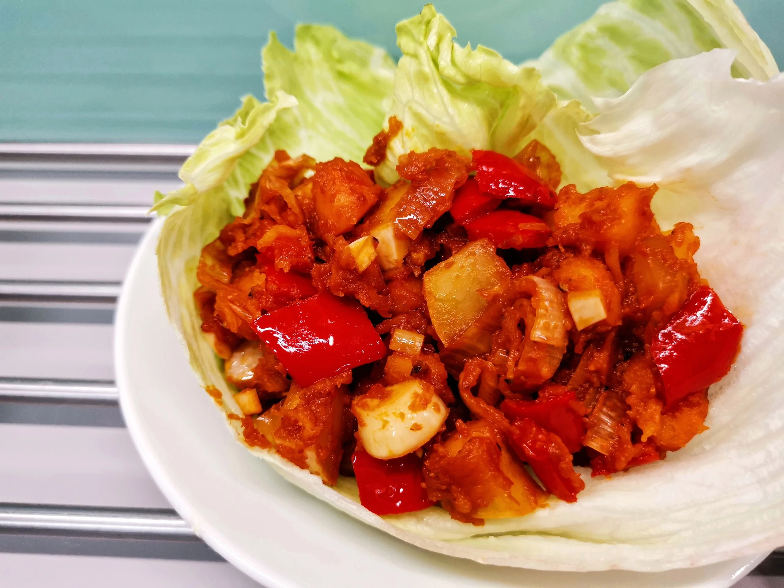 ШАГ 14 Через 5 минут блюдо готово! Перемешать и подавать в листе салата айсберг.