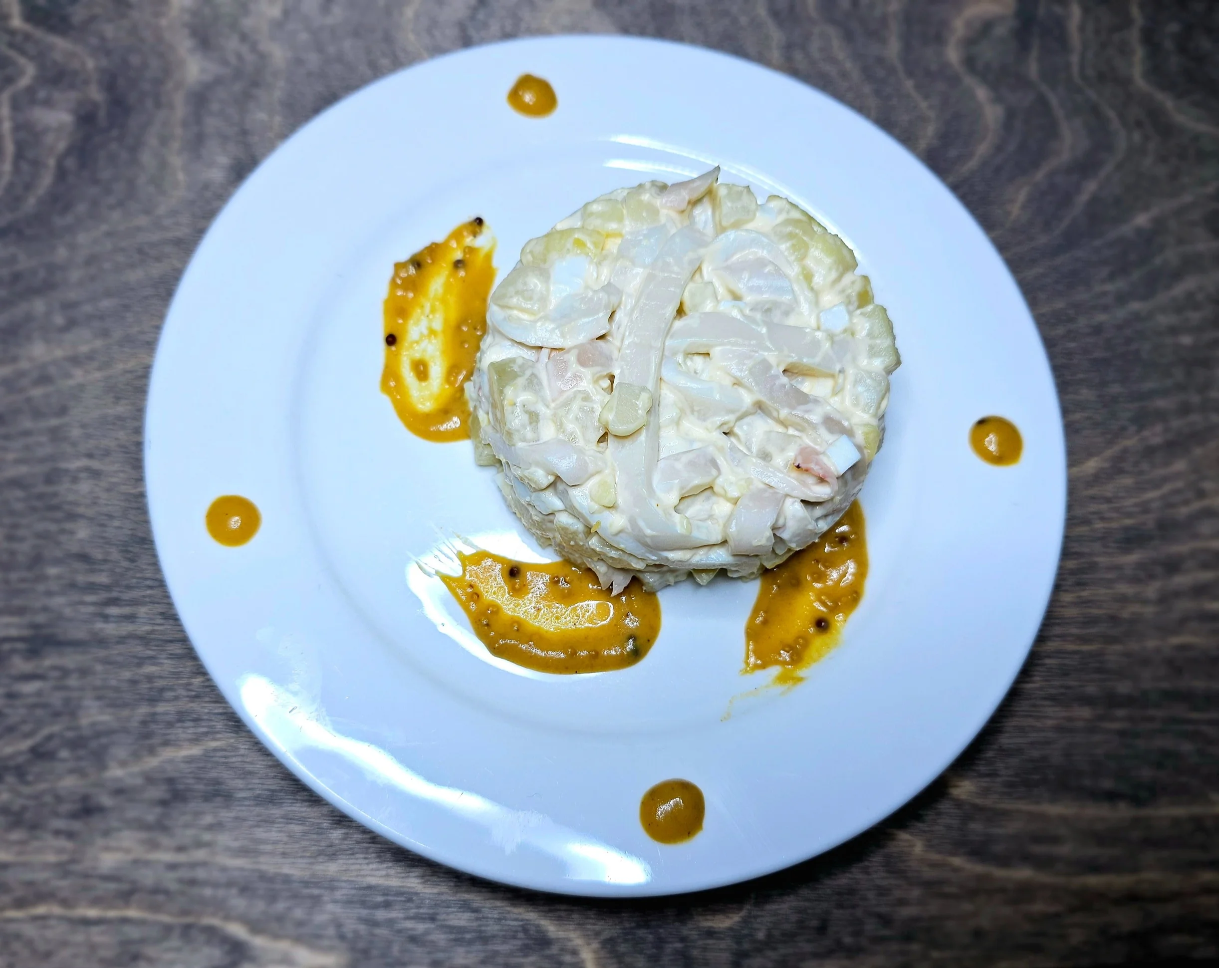 Кальмаровый салат с медово-горчичной заправкой