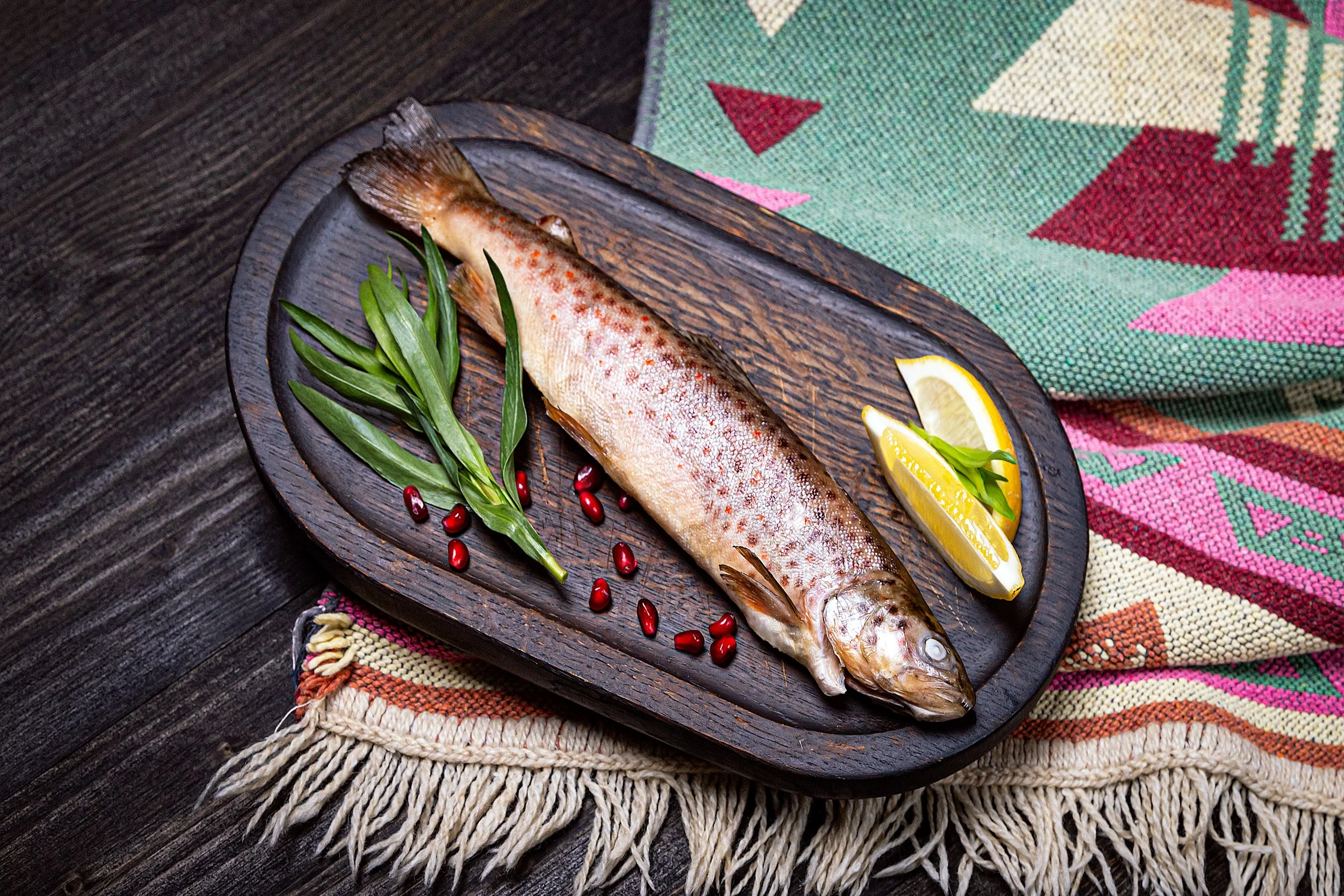 Ингредиенты для приготовления Севанская форель с томатами и мандаком: