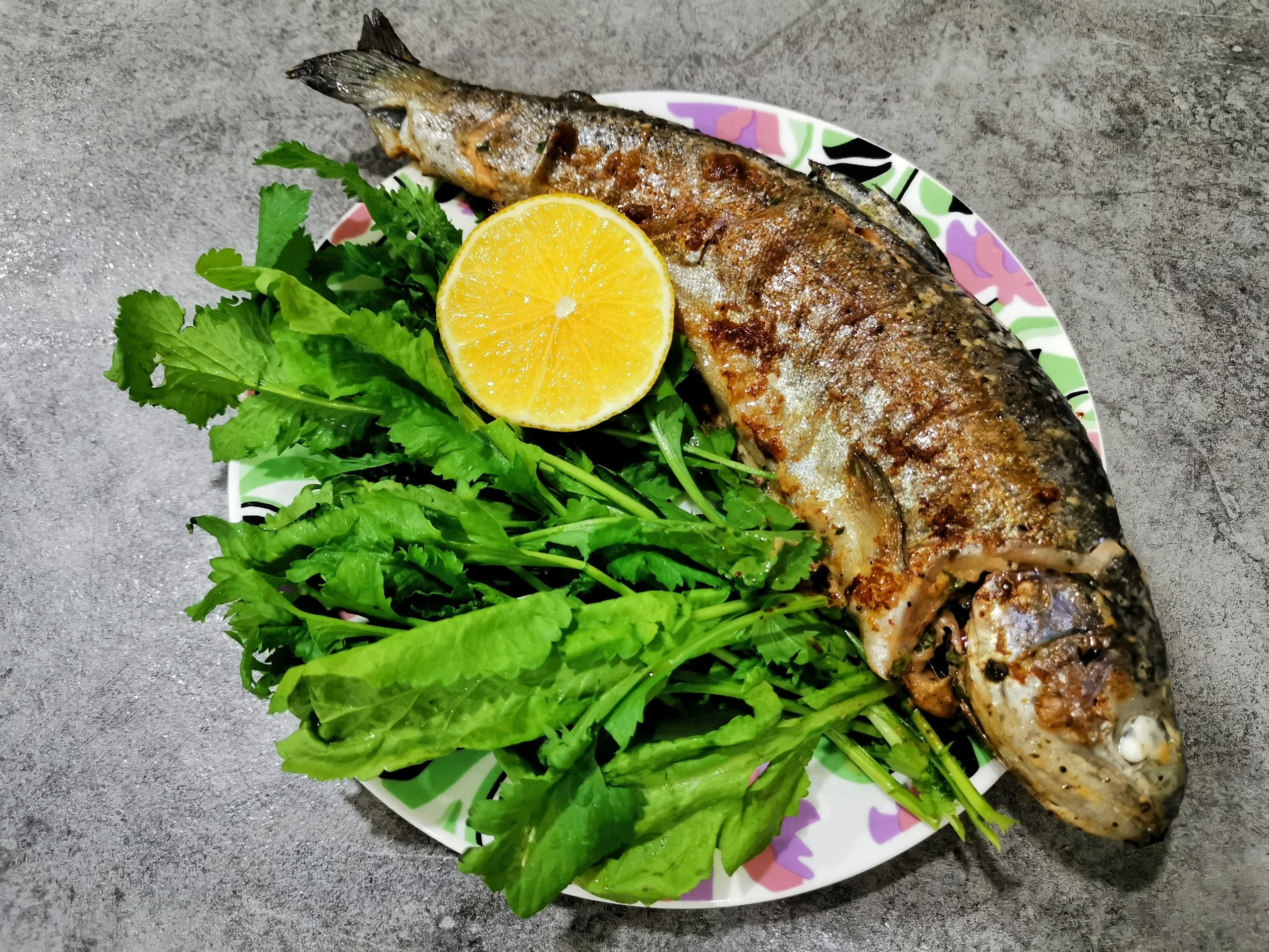 ШАГ 11 Через 5–6 минут переложить на блюдо с зеленью и подавать с кусочком лимона.