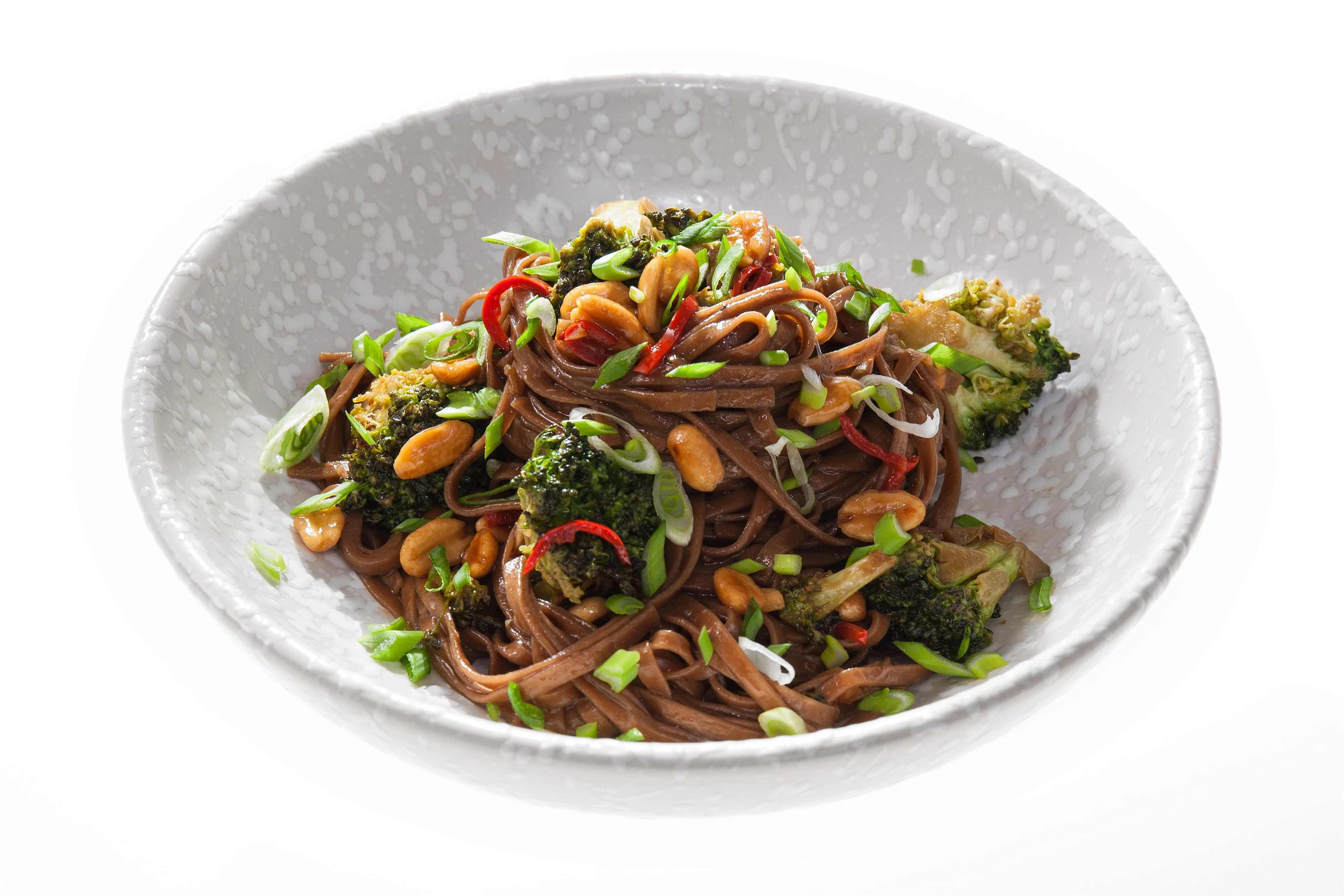 Гречневая лапша стир-фрай с брокколи и арахисом