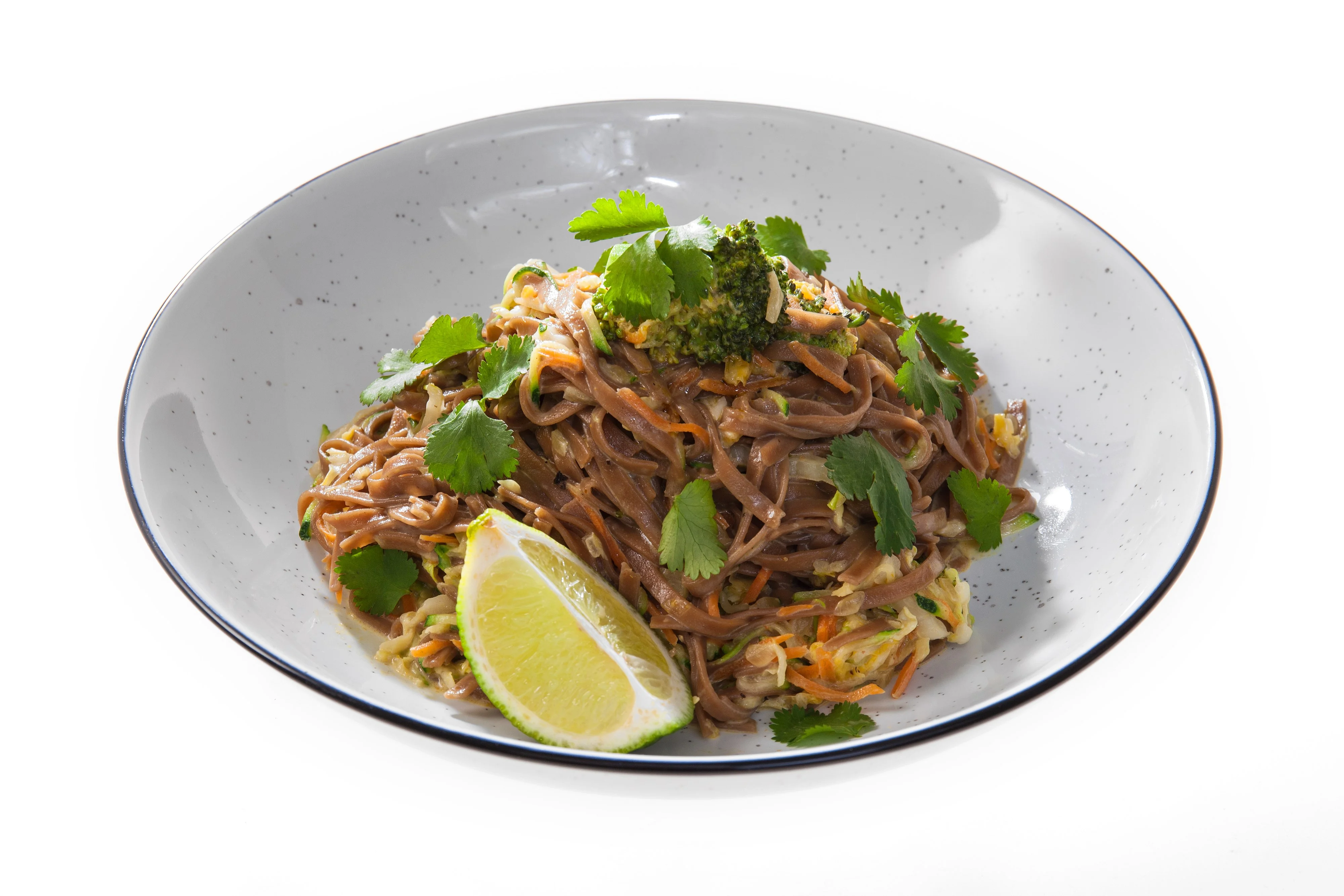 Гречневая лапша с зелеными овощами в кокосовом соусе