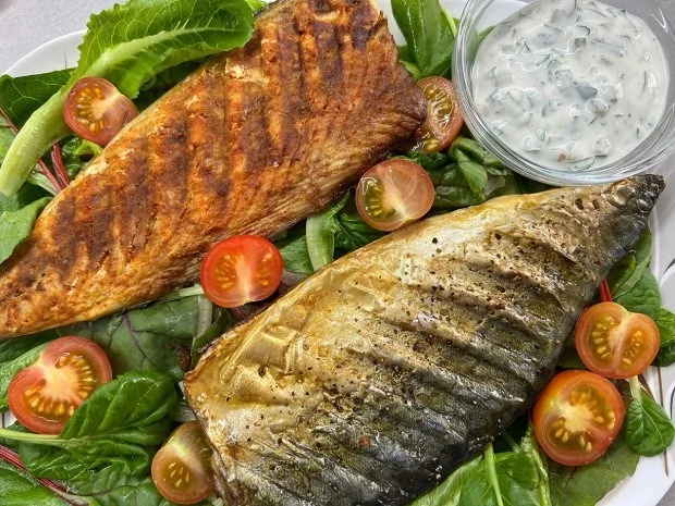 Ингредиенты для приготовления Скумбрия гриль с соусом на основе йогурта: