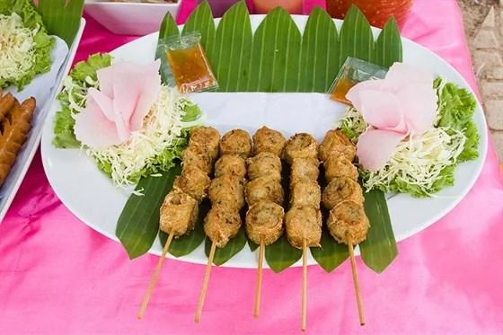 ШАГ 3 Разогрейте гриль. Наденьте по 4 котлеты на каждый и жарьте 7 минут до золотистой корочки. Переверните и жарьте до готовности. Подавайте с нарезанным кольцами луком и лимонными дольками.