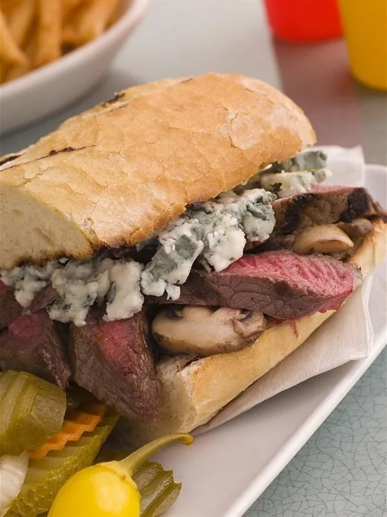 Сэндвичи с говяжьим стейком, шампиньонами и кремом из базилика