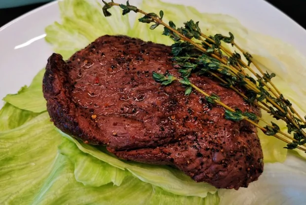 Говяжий стейк Оливковое масло Тимьян Розовая гималайская соль Смесь молотых перцев Сливочное масло Салат айсберг Главная Основные блюда Американская кухня Пошаговые рецепты Стейки Блюда из мяса