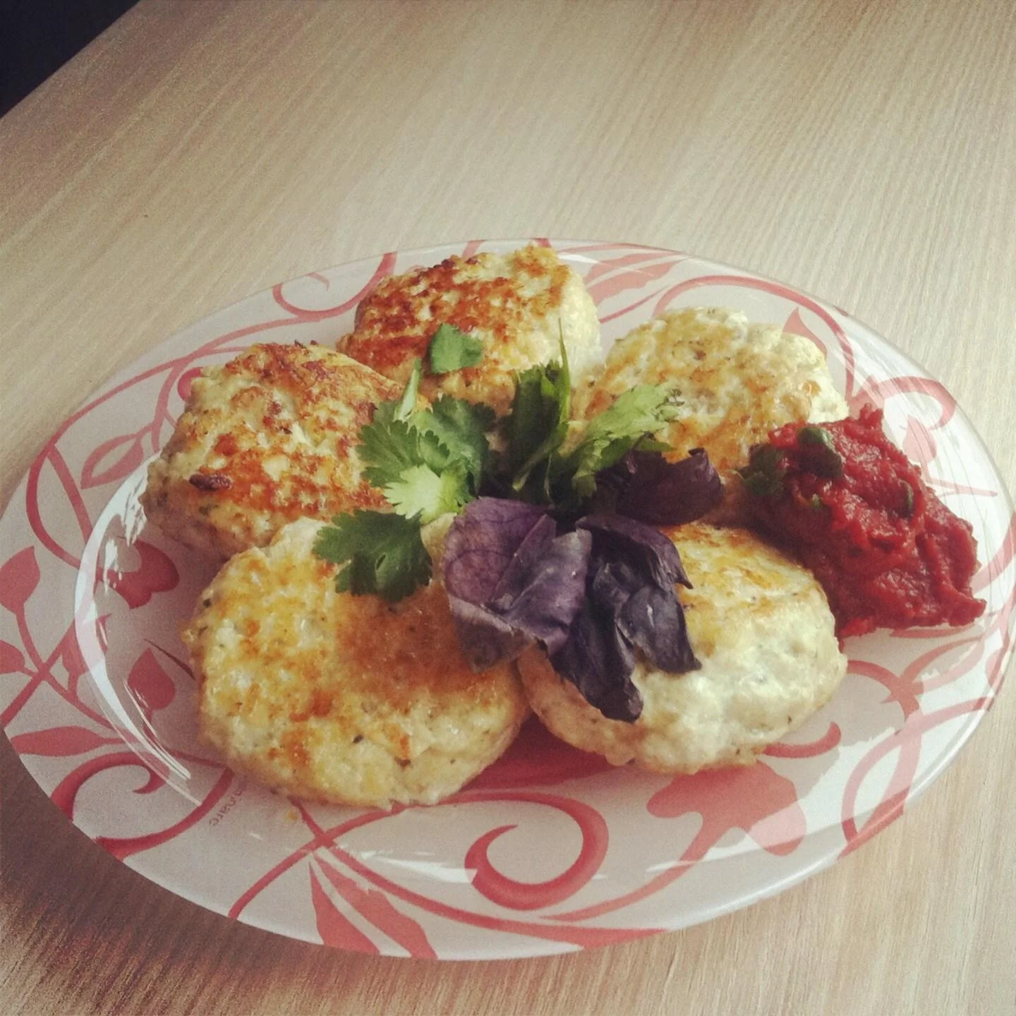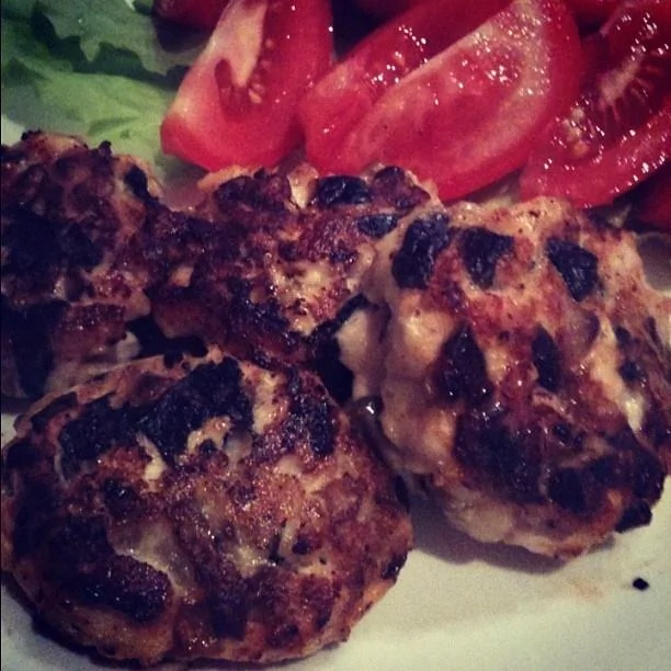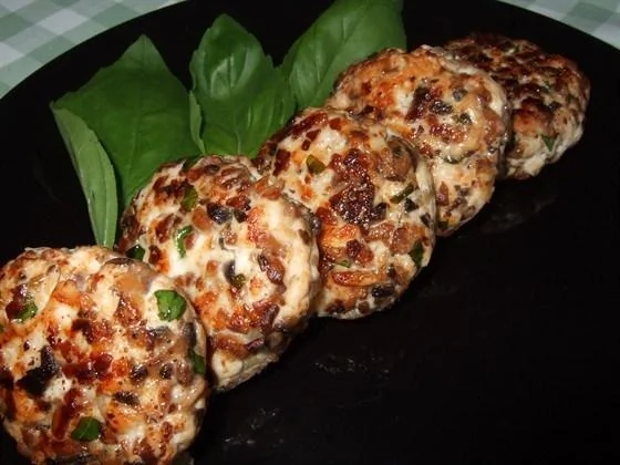 Рубленые куриные котлеты с грибами и зеленым базиликом