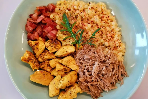 Рис ширатаки Куриная грудка Сливки 10%-ные Сыр дорблю Грибы эноки Бекон Морская соль Смесь молотых перцев Сливочное масло Карри-порошок Перец чили хлопьями Главная Основные блюда Авторская кухня Пошаговые рецепты Блюда с рисом