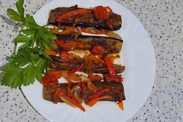 ШАГ 14 Выложить в сковороду к баклажанам готовые овощи. По желанию досолить.
