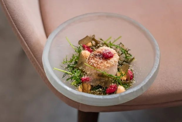 Гребешки с водорослями и земляникой