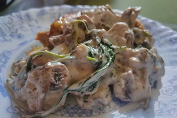 Шампиньоны со шпинатом в сливочном соусе