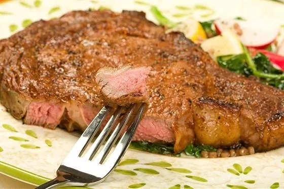 Рибай стейк в специях c винным соусом и с пюре из пастернака