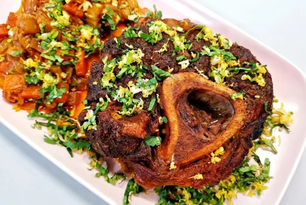 ШАГ 13 Спустя 3 часа приготовить гремолату: мелко нарезать петрушку, на мелкой терке натереть чеснок и цедру лимона.