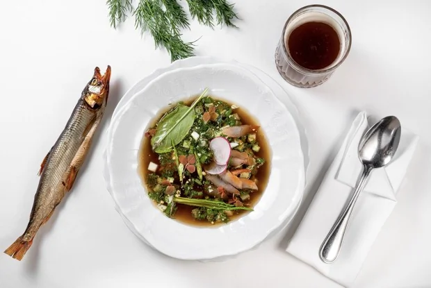Окрошка с копченой корюшкой