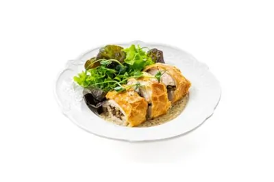 ШАГ 13 Подавать куриные рулеты в аэрогриле со смесью салатных листьев.