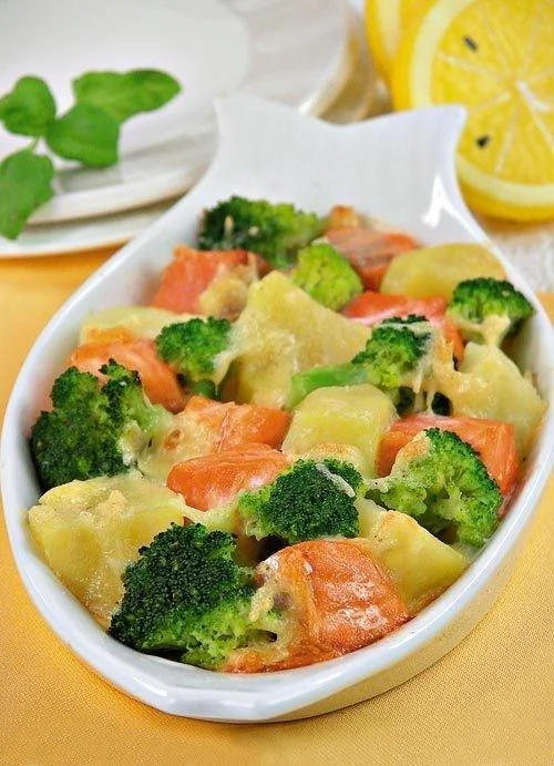 Запеченный лосось с брокколи